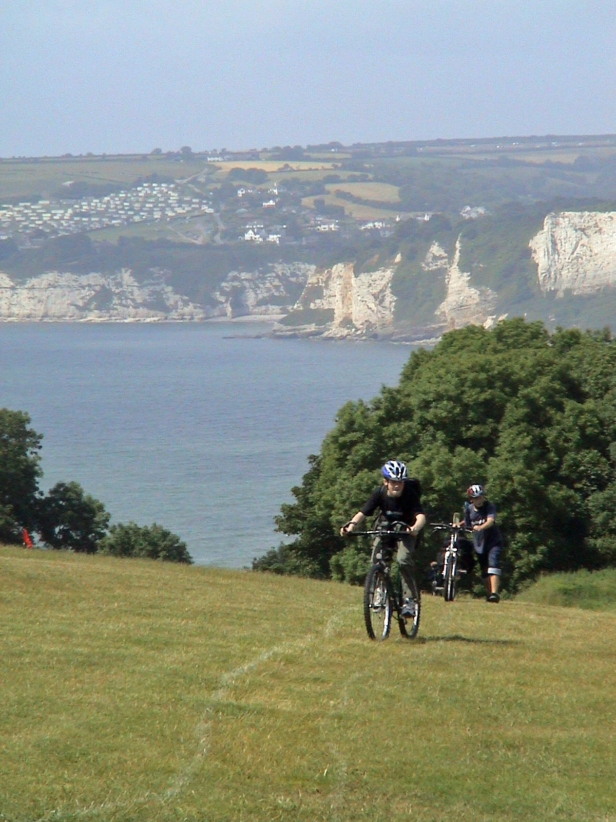 Ashley and Joe climb the steep coast path at Haven Ball, Seaton.