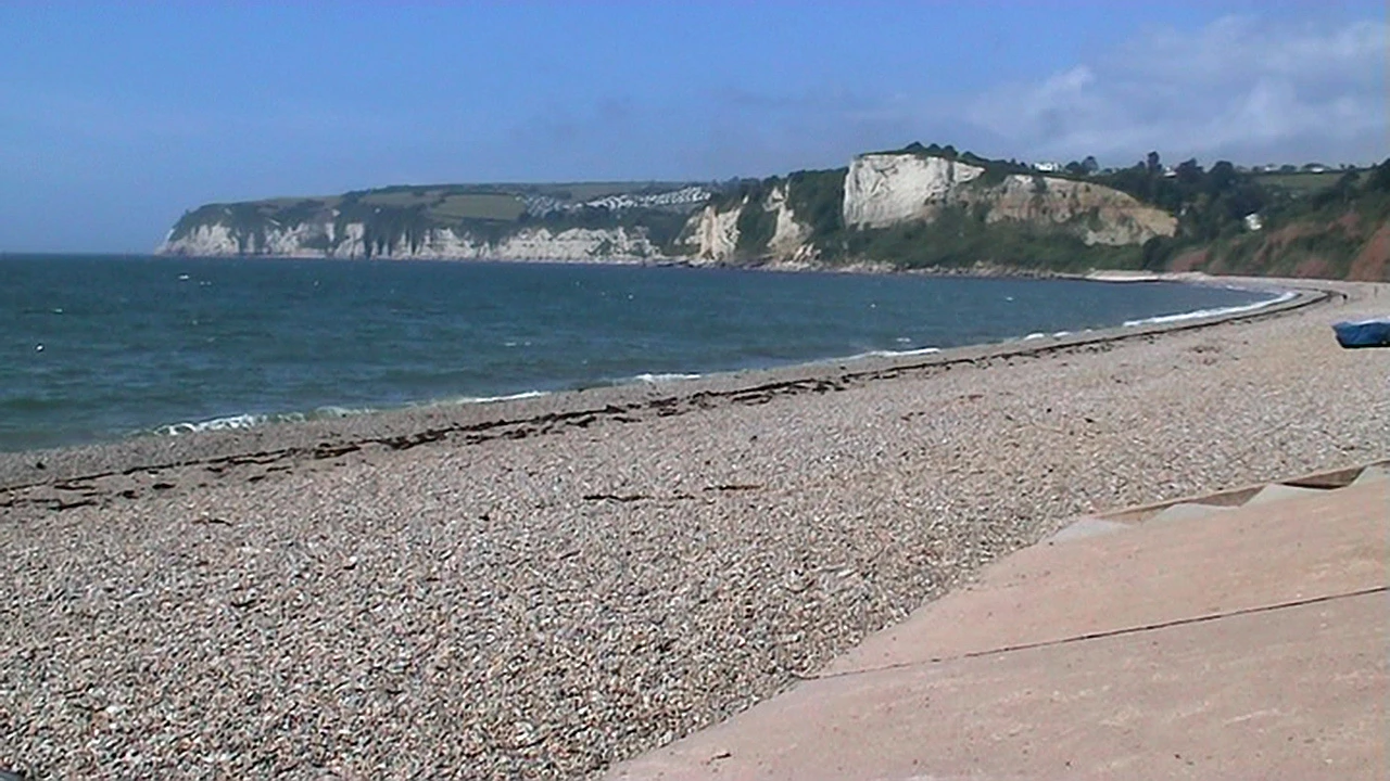 Looking west to Beer from Seaton Beach, 2.1 miles in.
