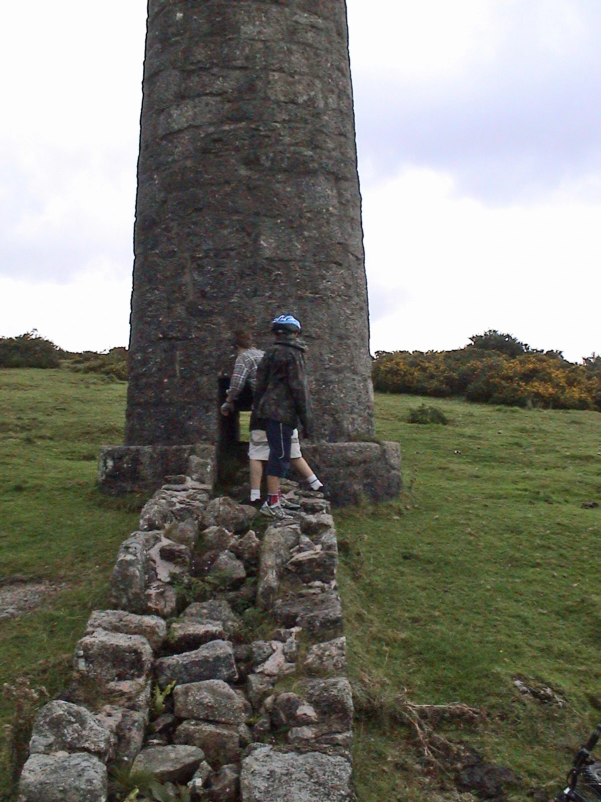Gage and Harry explore a chimney at Powdermills, 3.5 miles from Bellever.
