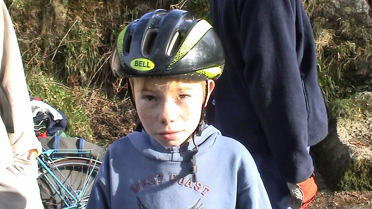 Charlie Barrow crossed the stepping stones with a bit of help.