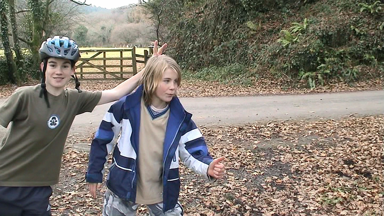 Sol egging Louis on for the first short-film clip at Bickham Bridge