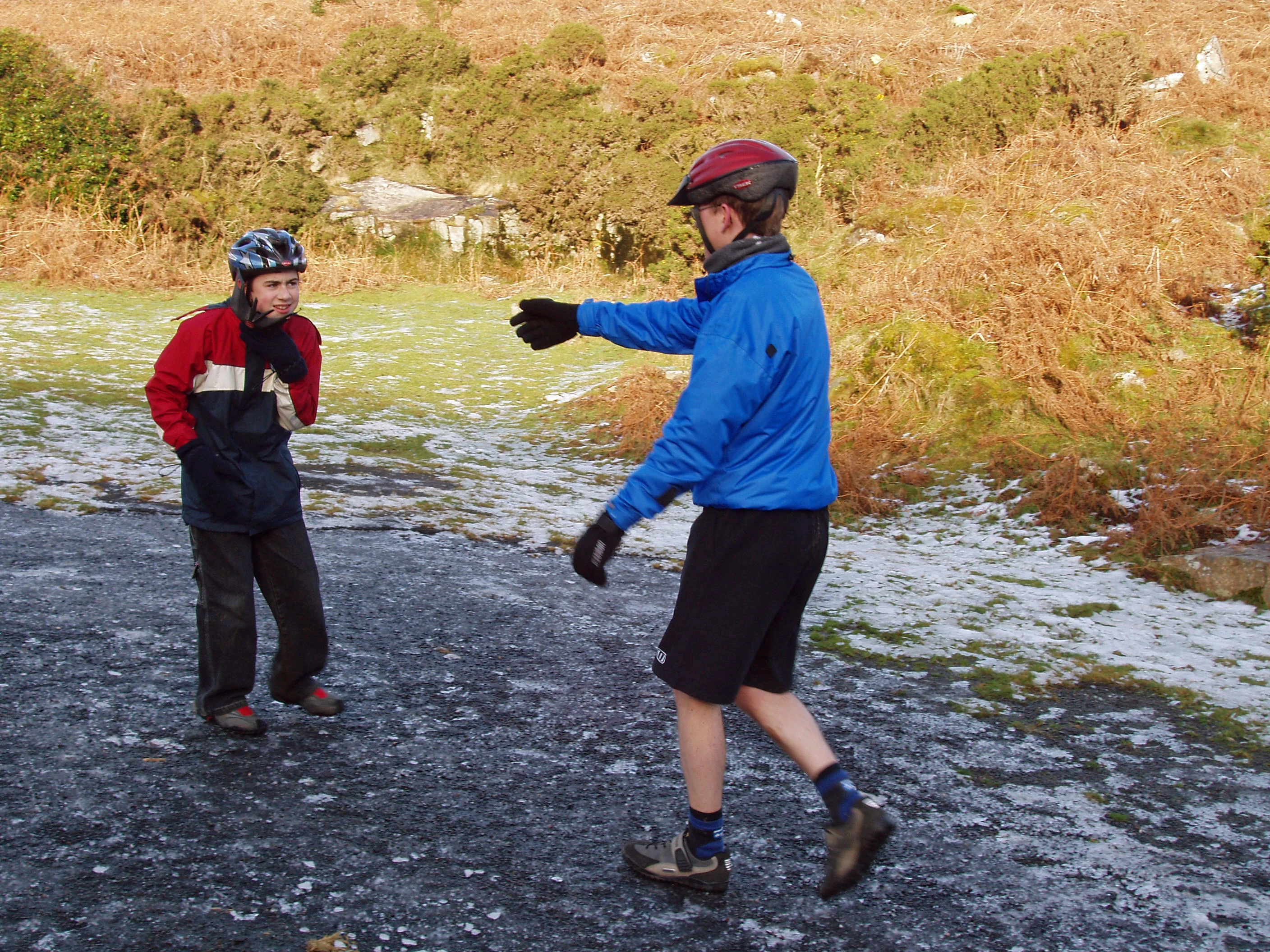 Keir and Oliver battle on the ice en route to Avon Dam.