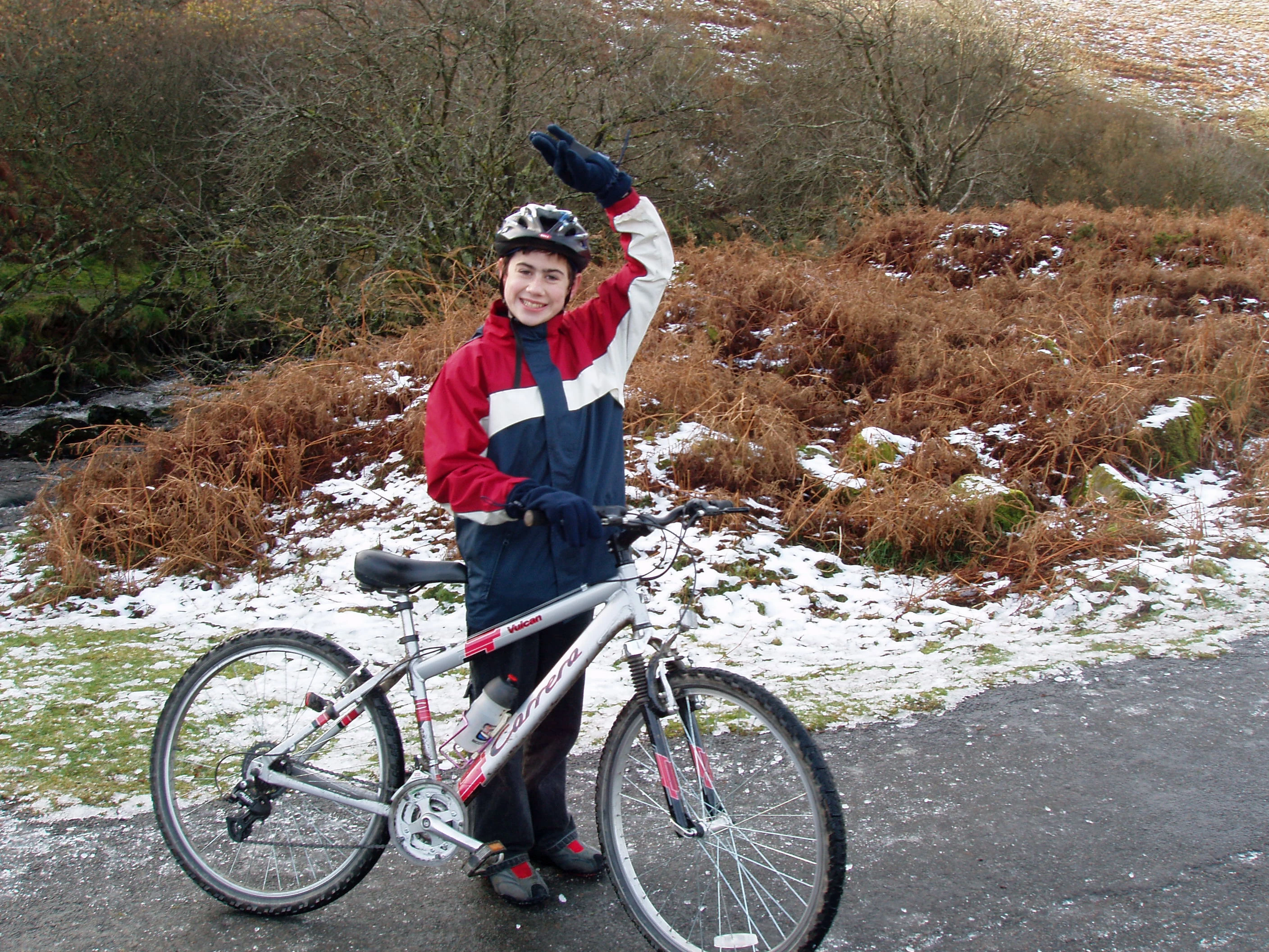 Keir with his bike on the ice.