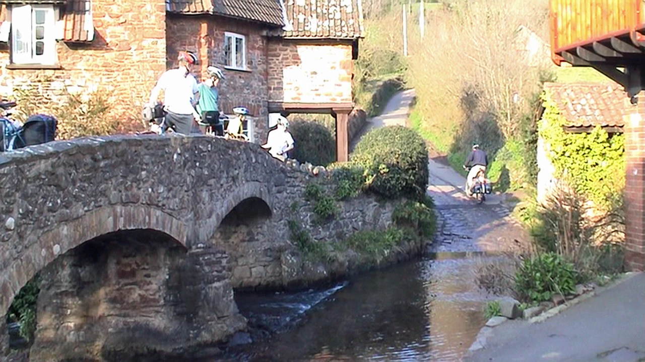 No-one brave enough to tackle Allerford ford today — 22.5 miles in.