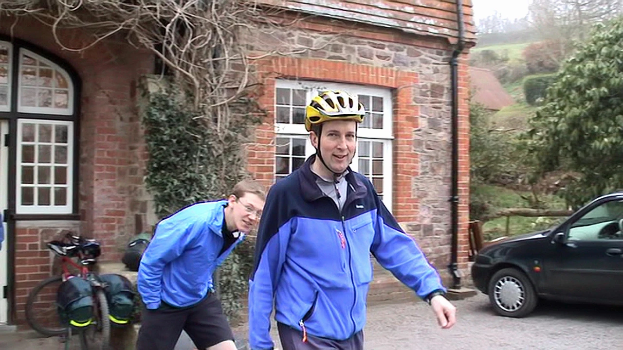 Michael and Oliver ready to roll from Exford Youth Hostel