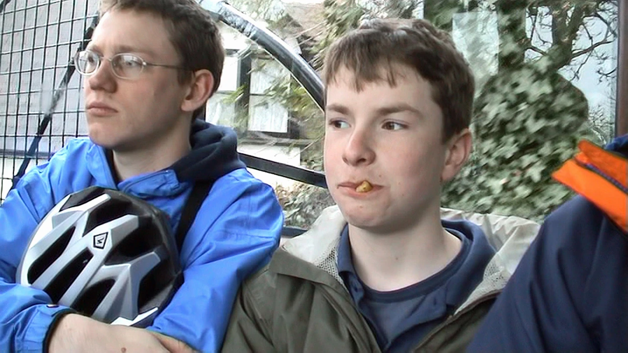 Olly and Joe on the Lynton and Lynmouth Cliff Railway after shopping in the Lynmouth gift shops