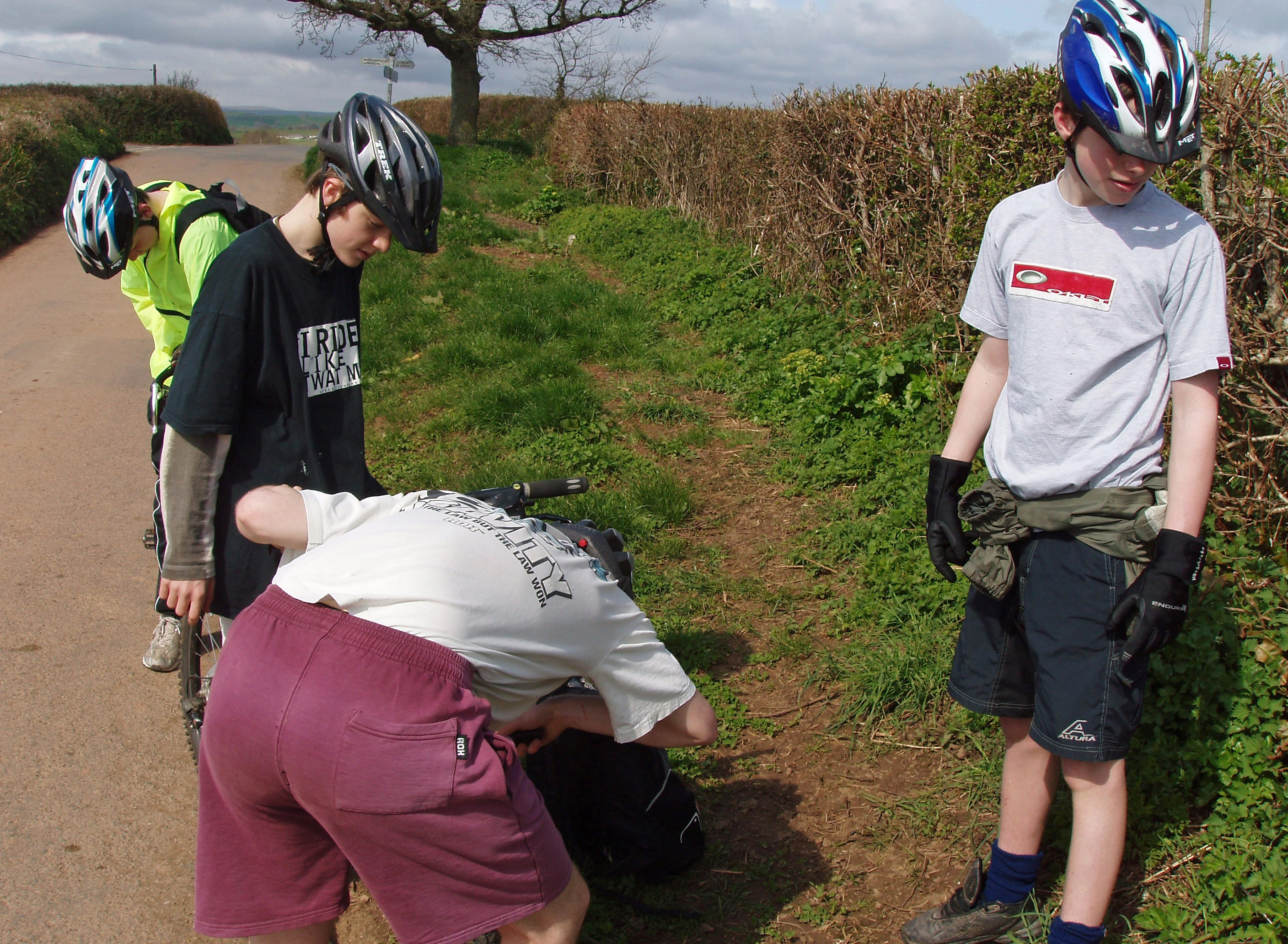 Olly, resident engineer, adjusts brakes at Bramble Oak Cross, near Denbury.
