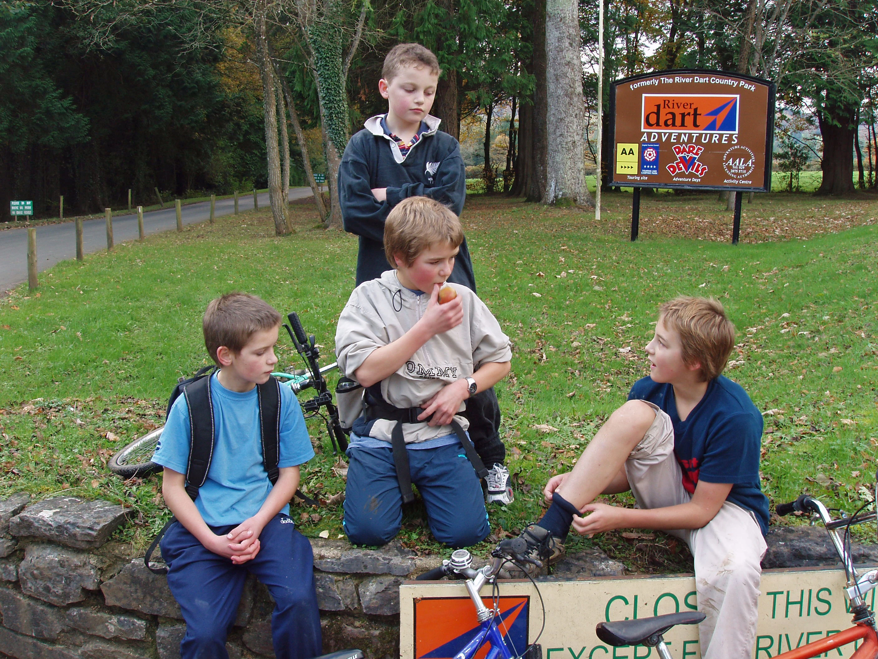 The youngsters at the River Dart Country Park entrance.
