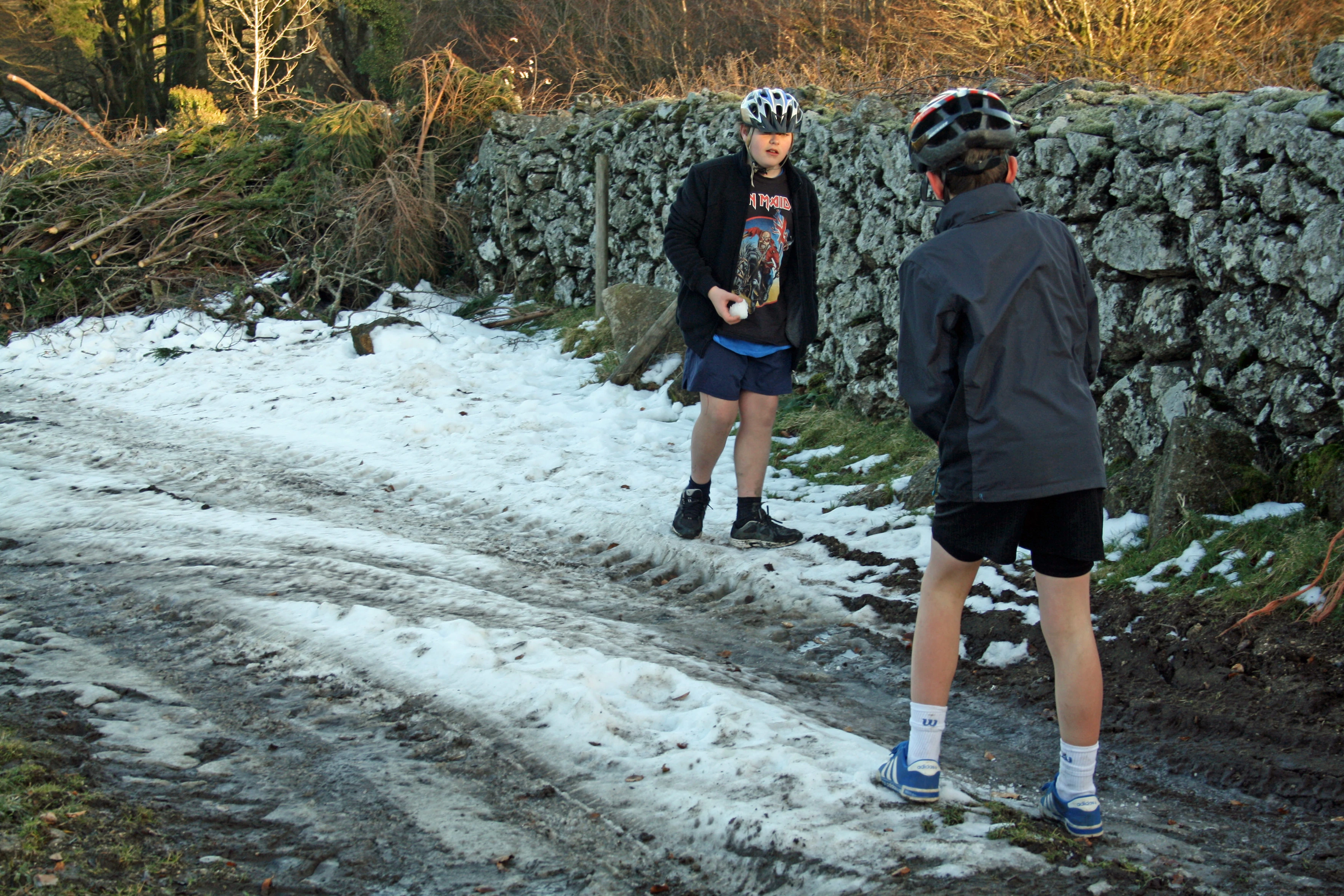 Dillan and George find some leftover snow