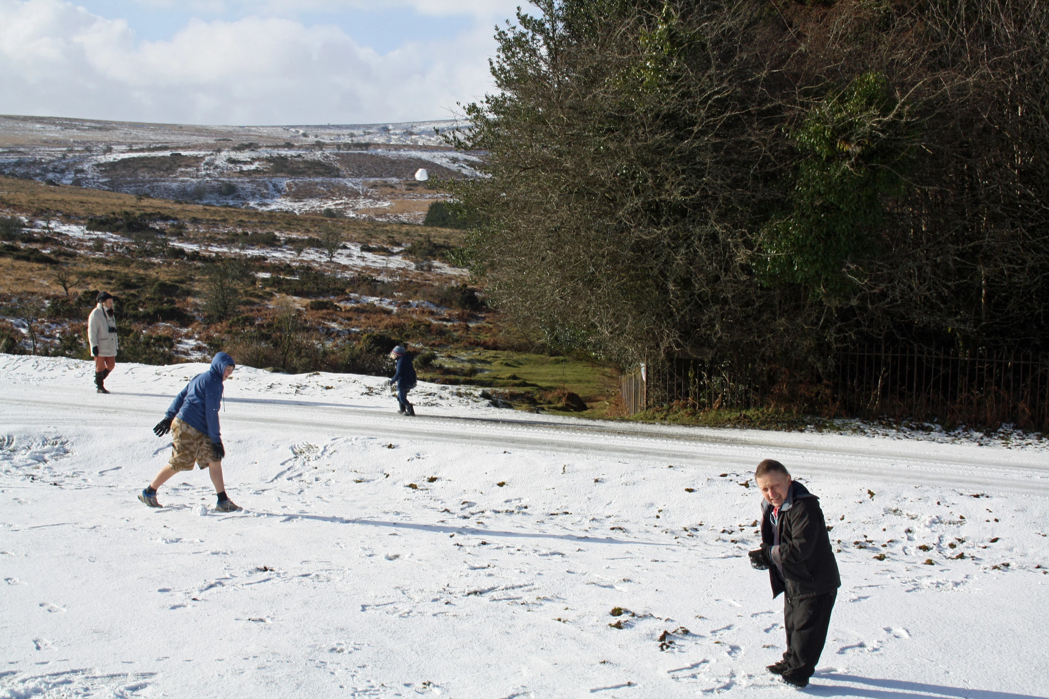 Lawrence takes aim at the lens with a snowball.