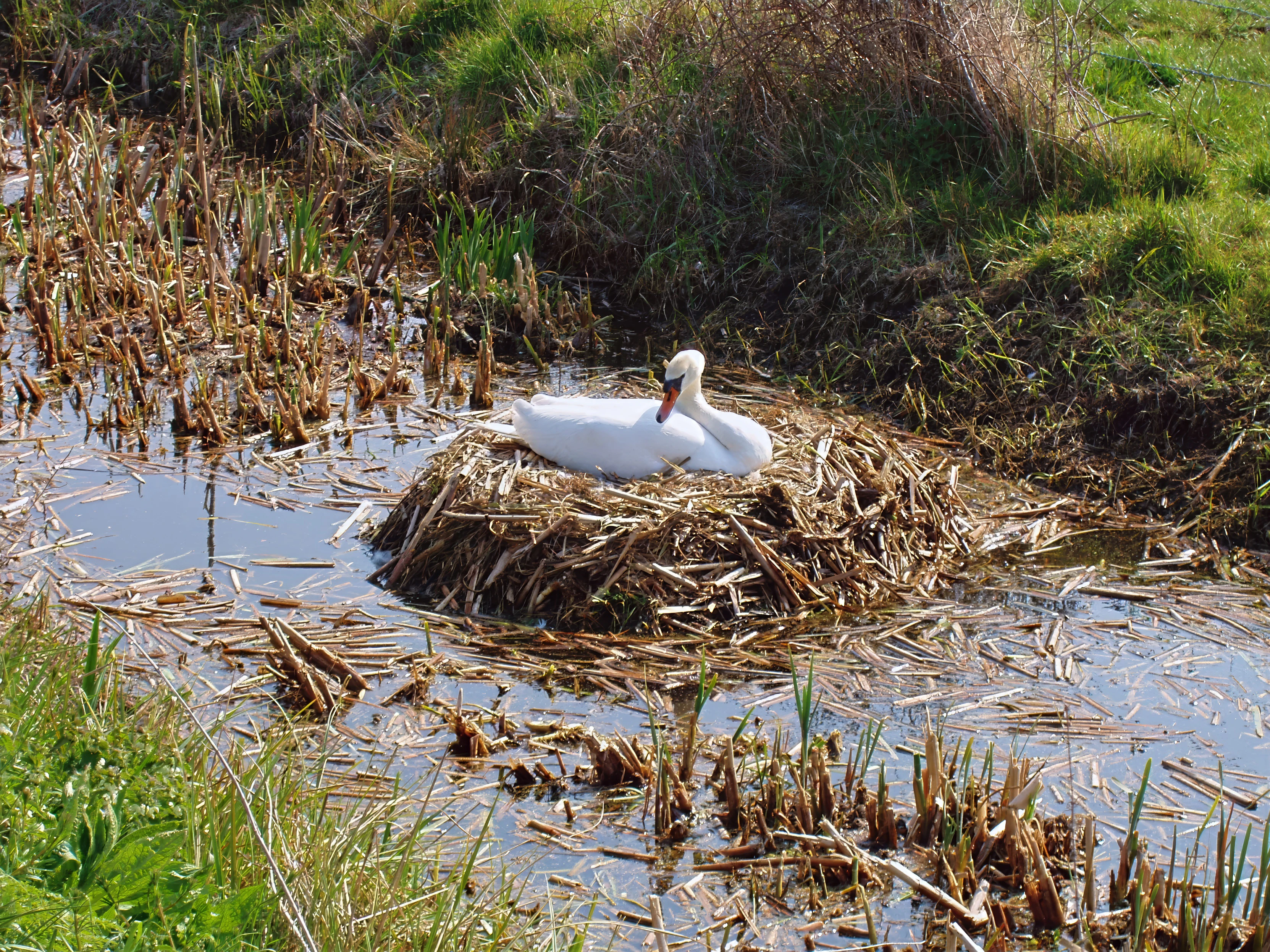 A nesting swan on the Somerset Levels.