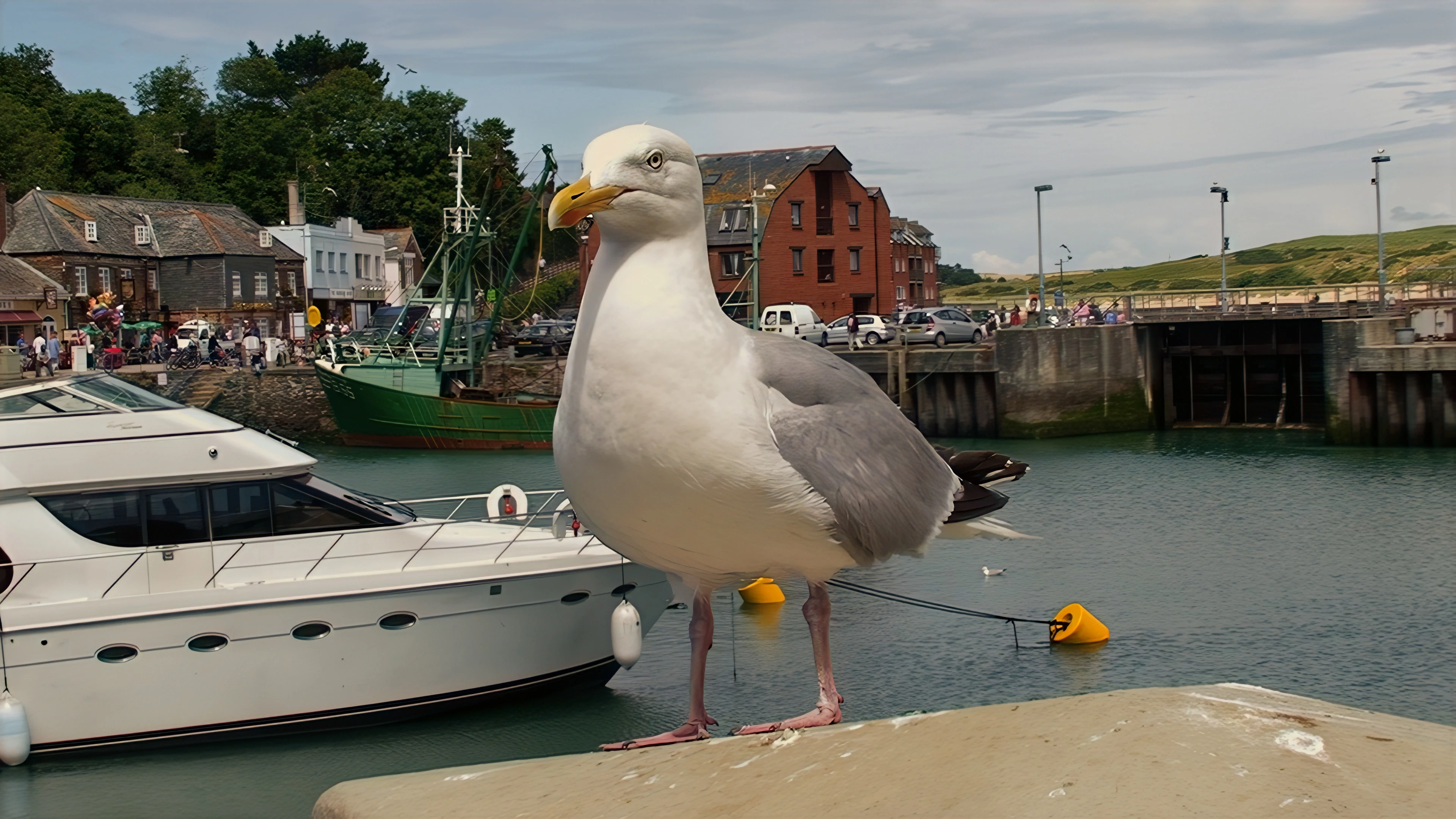 A seagull eyes our lunch at Padstow harbour, just in case.