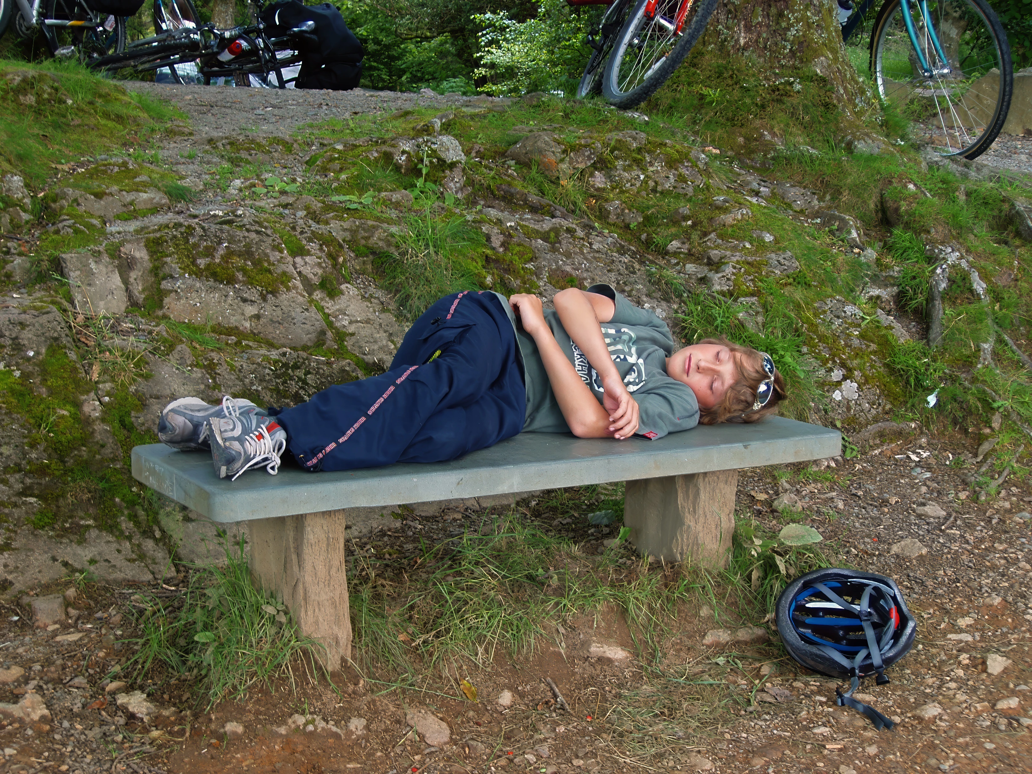 Henry rests after the stiff climb to Surprise Viewpoint over Derwent Water.