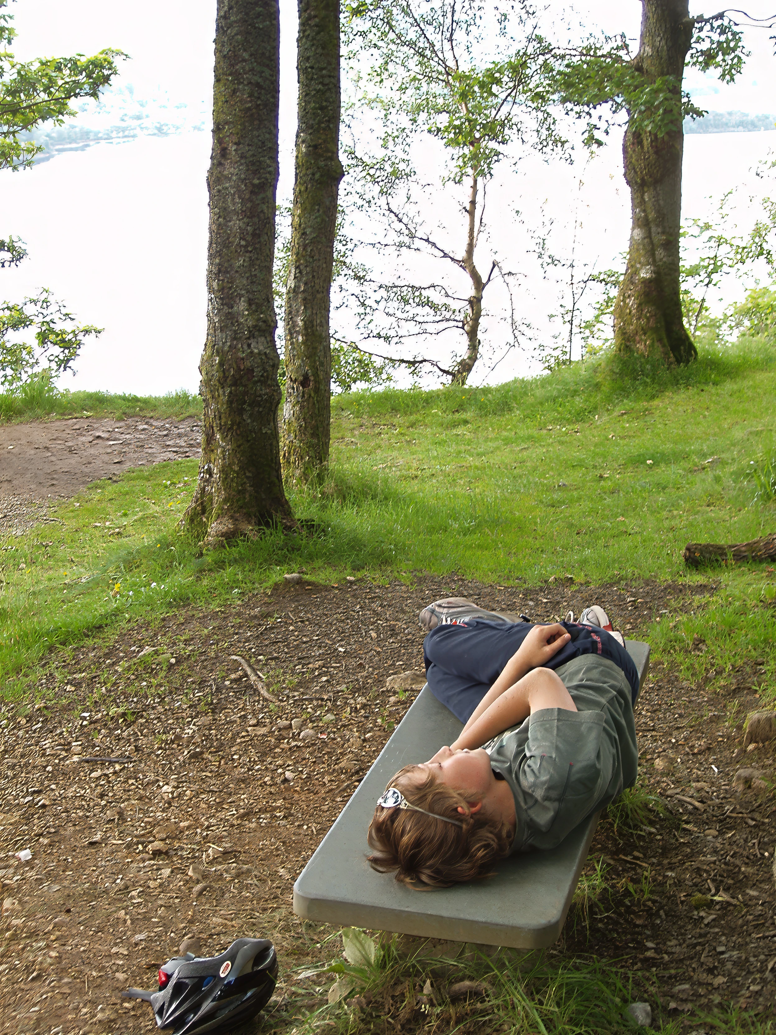 Henry pauses after the stiff climb to Surprise Viewpoint overlooking Derwent Water.