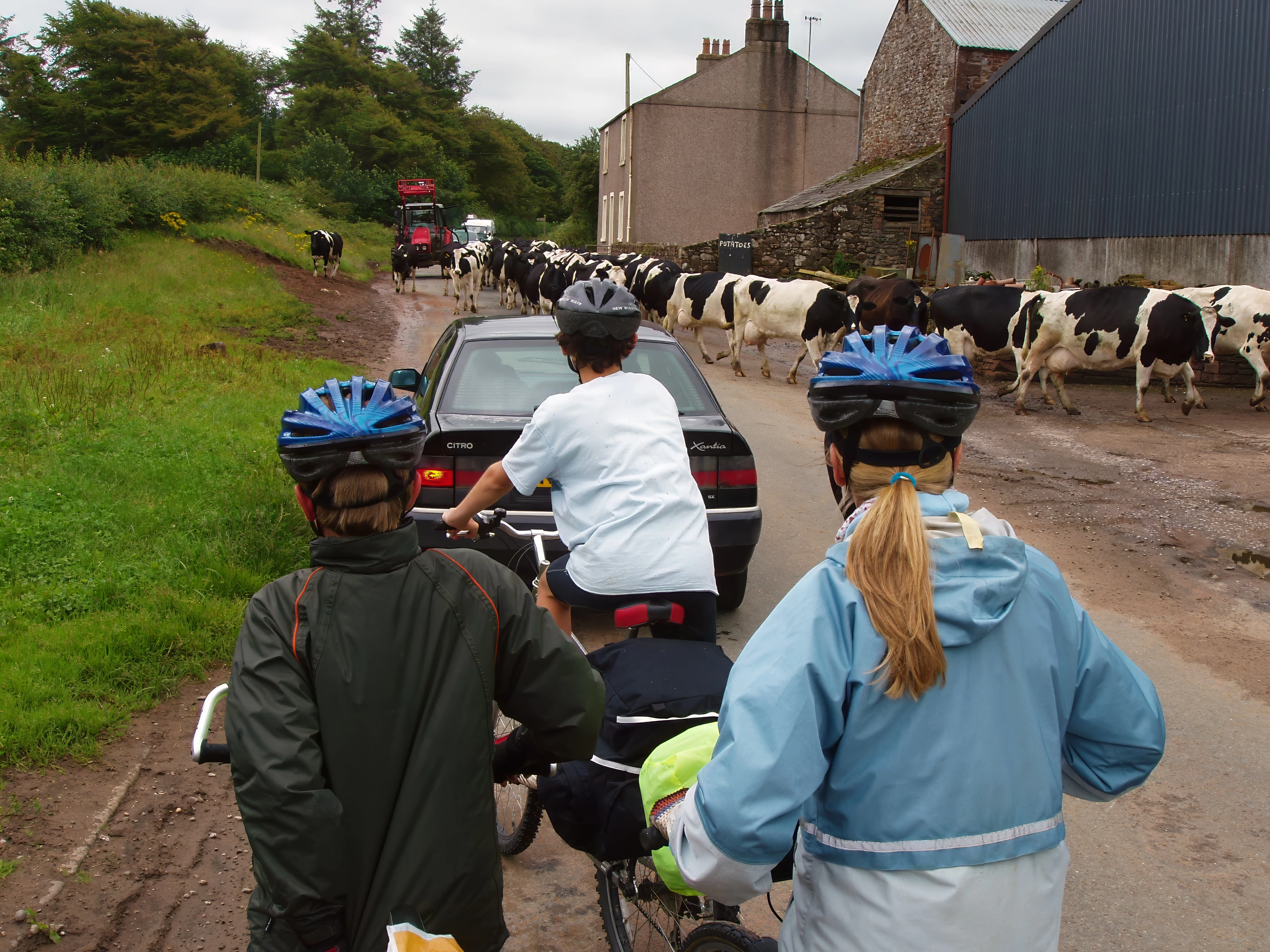 Hold-ups at Sorrowstones Farm as cows are brought in for milking.