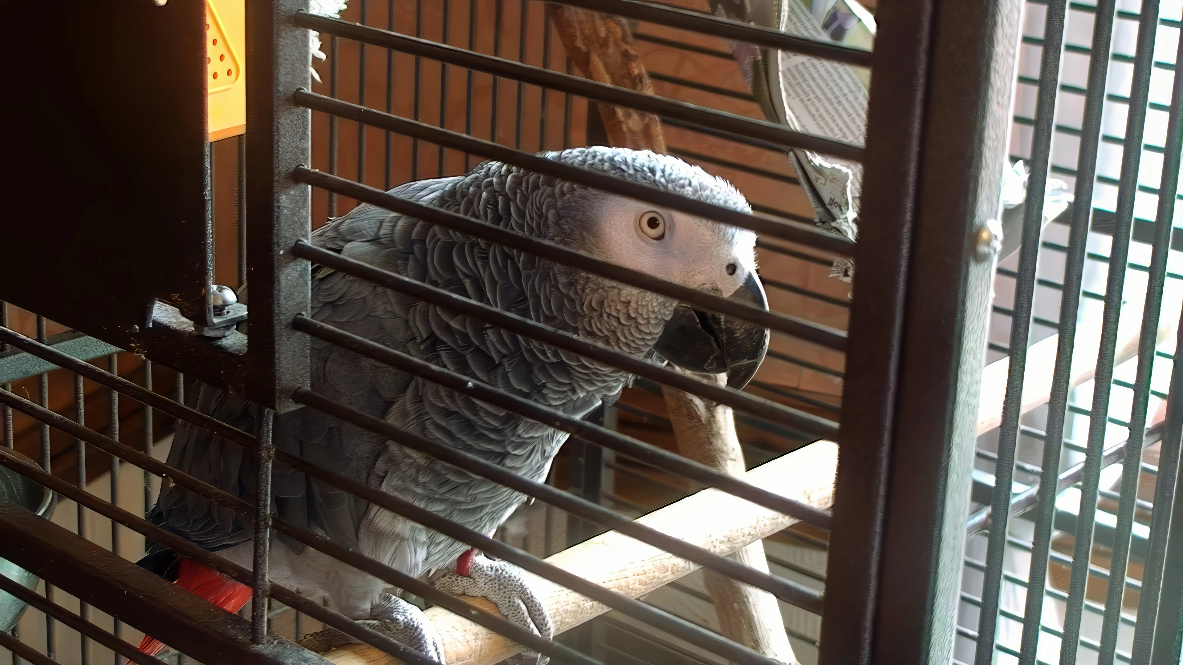 The very friendly parrot at the Lakeland Habit Café above the shop, Gosforth.