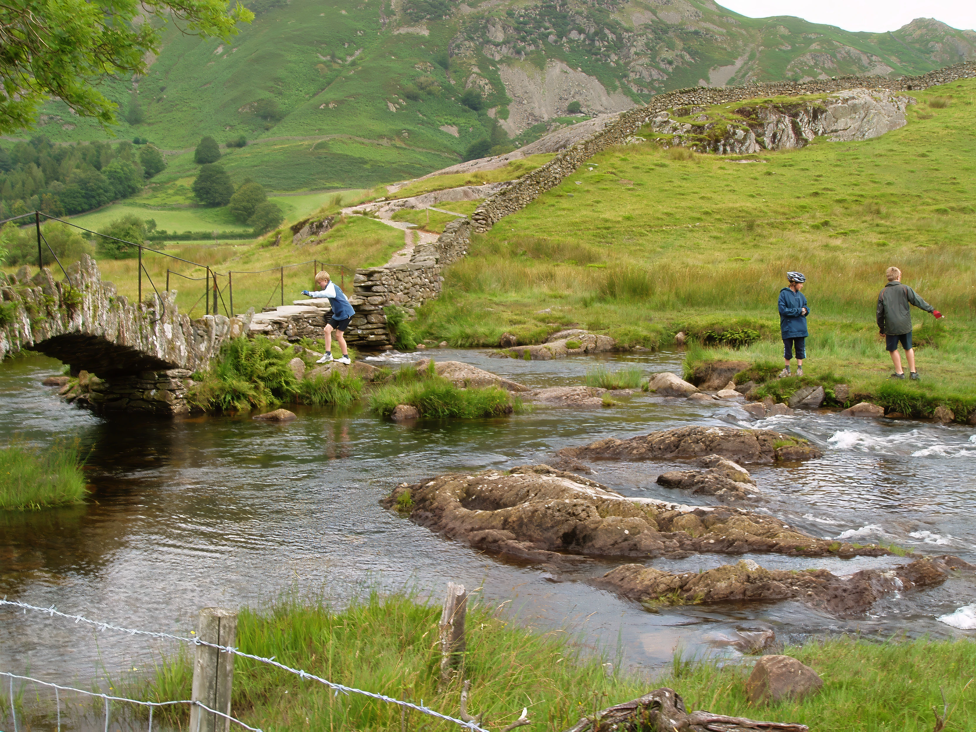 The youngsters have fun on the island by Slater's Bridge.