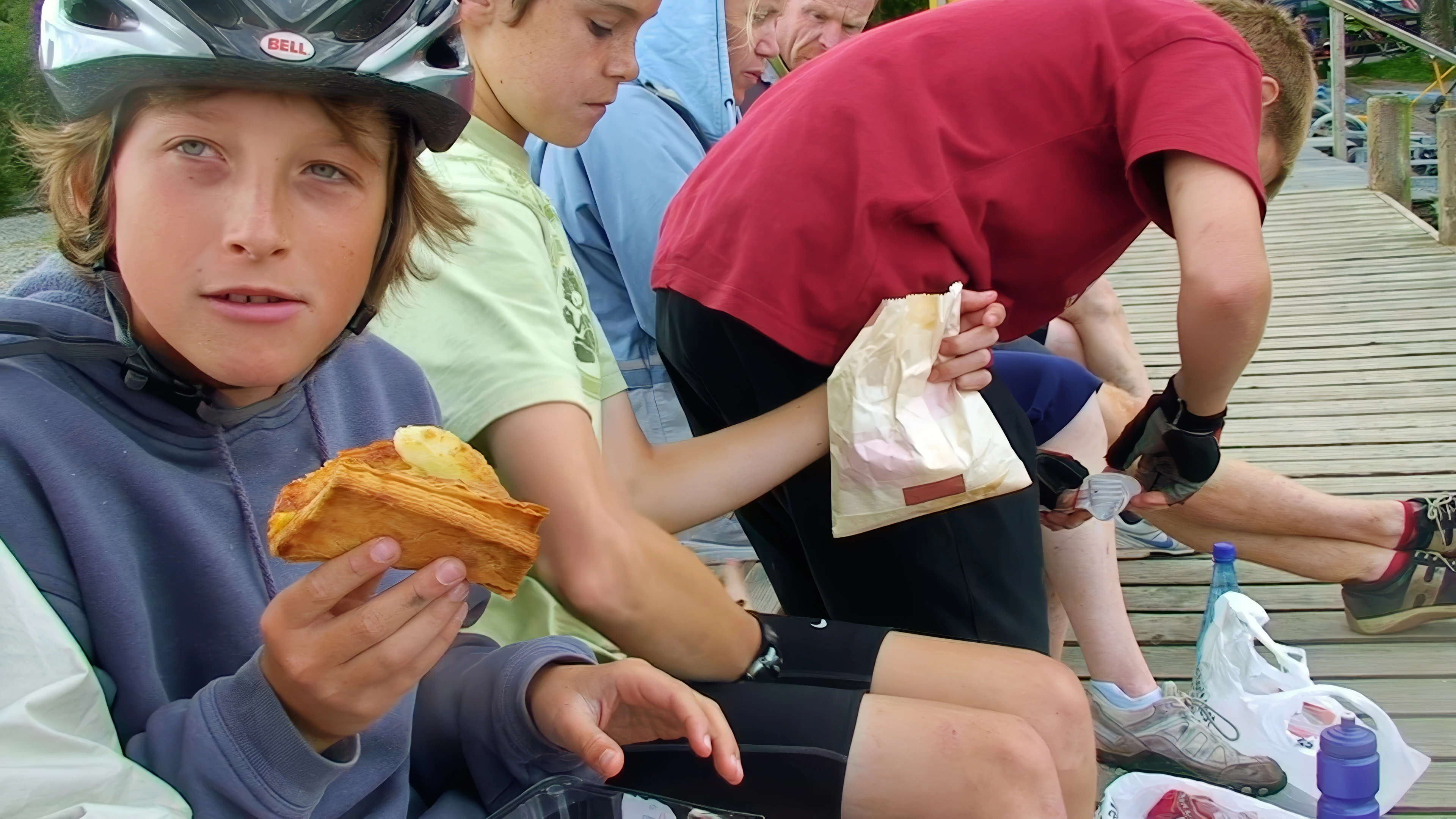 Henry tackles seconds while Freddie savours his £2 fudge at Coniston Landing.