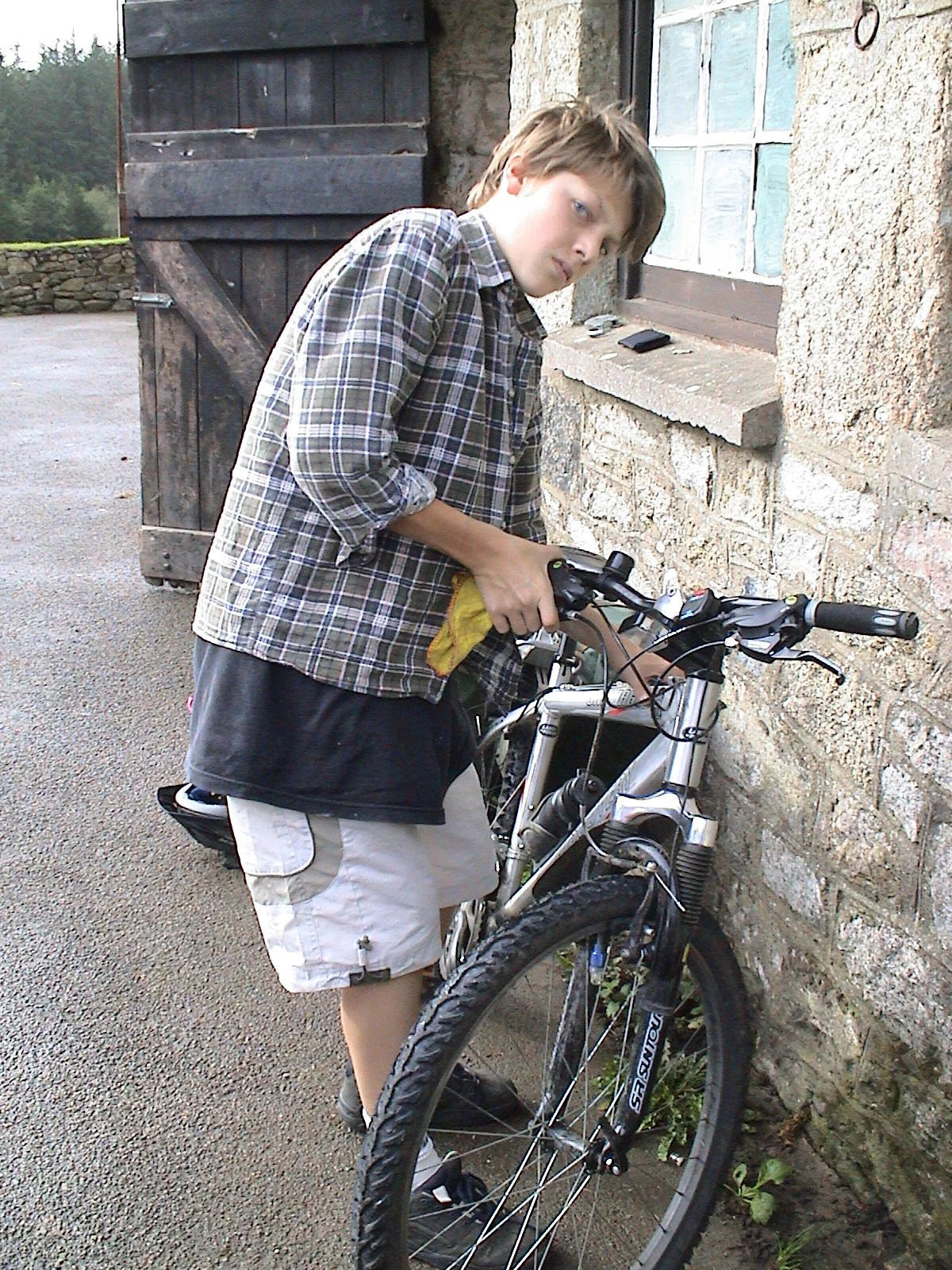 Gage Conway readies his bike at Bellever Youth Hostel.