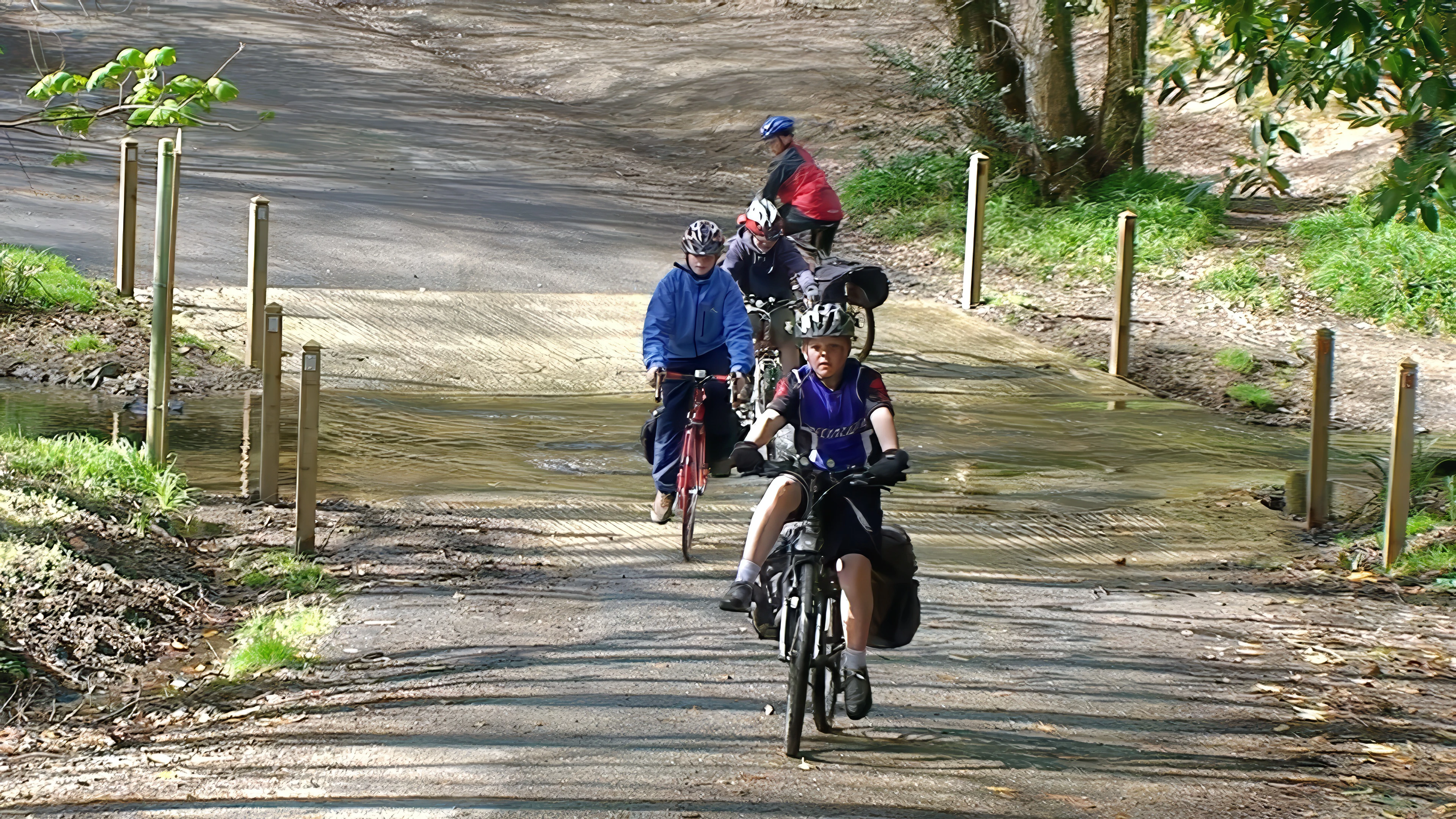 Ponsontuel Creek ford proved irresistible; the youngsters detoured to splash through.