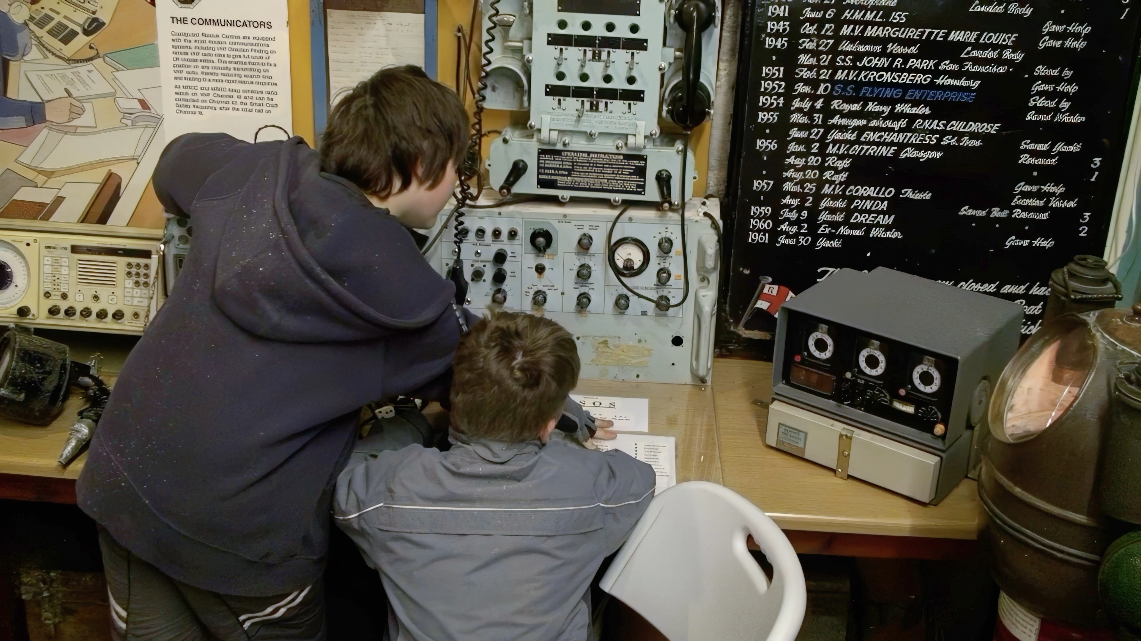 Zac and Ash test the maritime communications gear at the Shipwreck Heritage Centre, Charlestown.