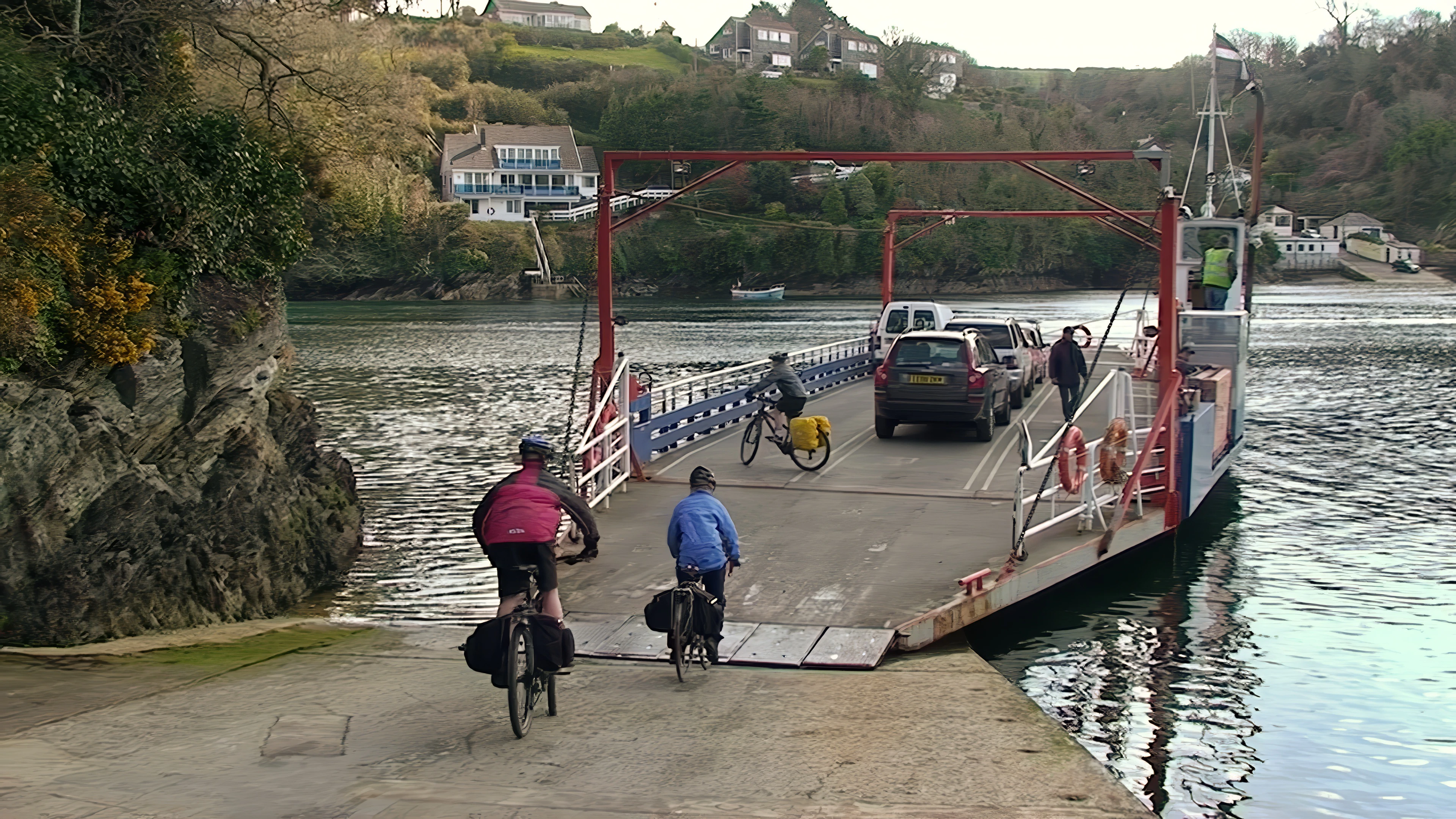 Boarding the Bodinnick car ferry at Fowey, 4 miles from the hostel.