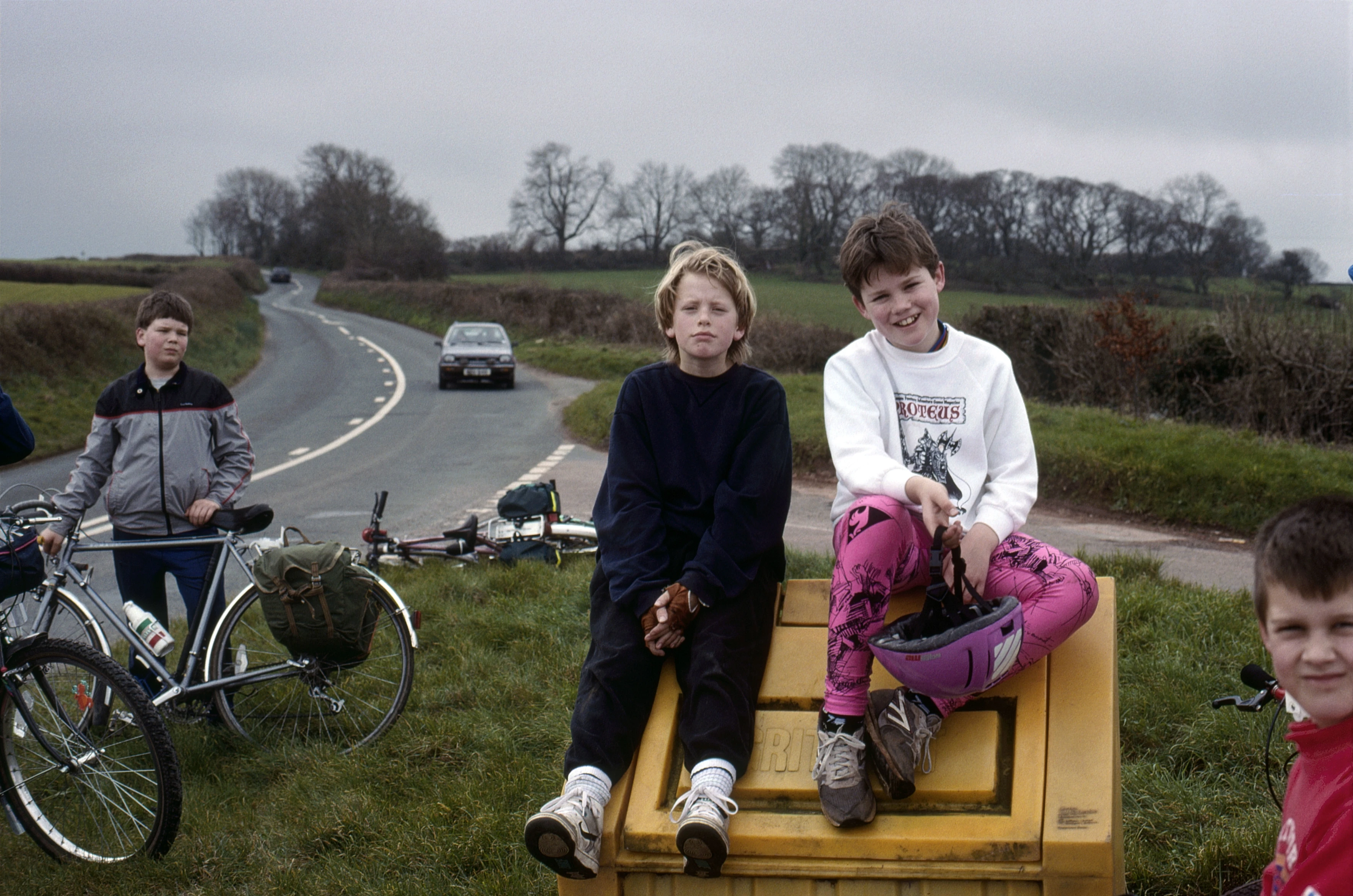 Neil, Toby and Alan near Galmpton, at the junction of Dartmouth Lane and Kennels Road.