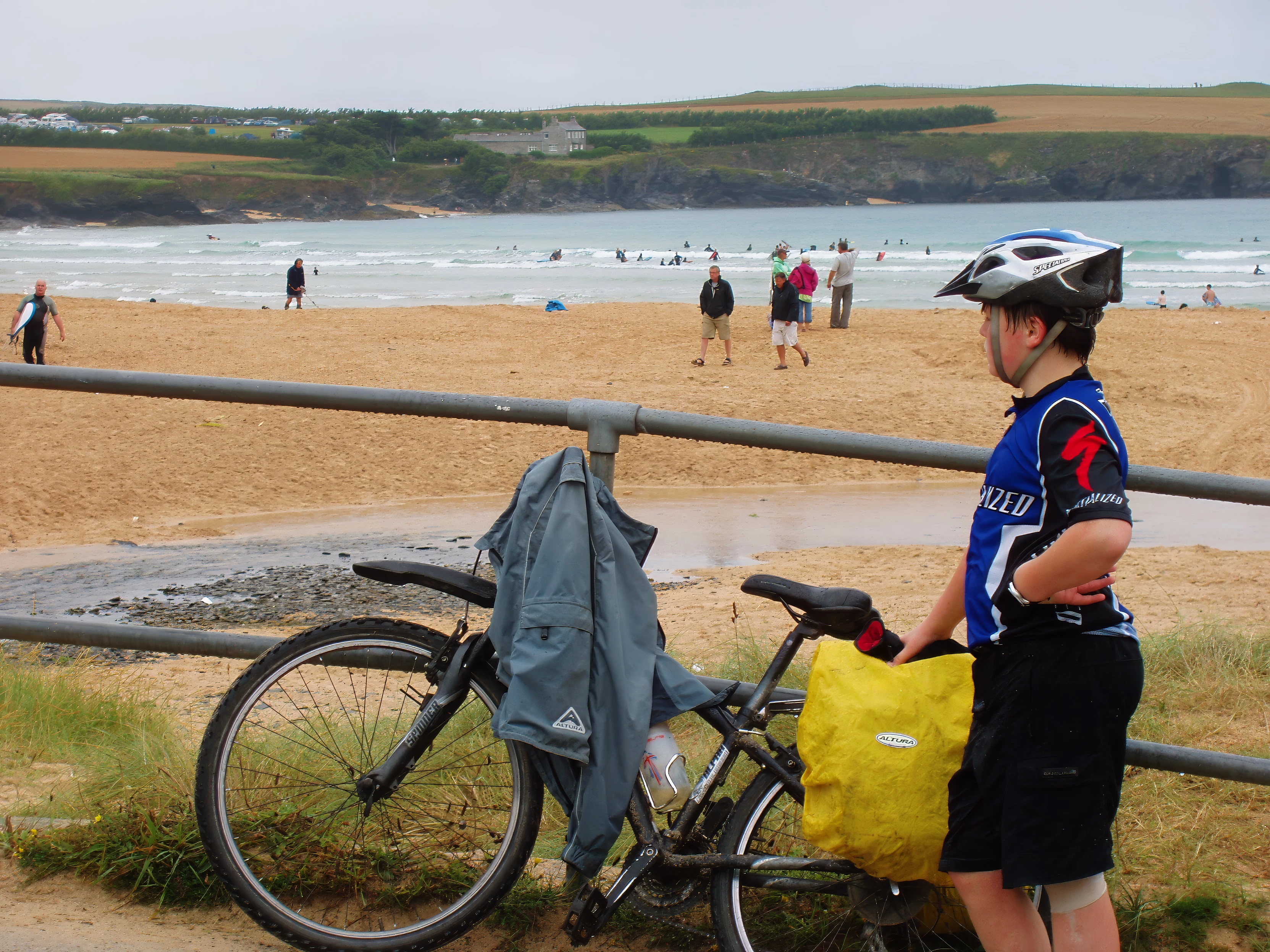 Drenched as we leave Harlyn Bay; luckily the hostel isn’t far.