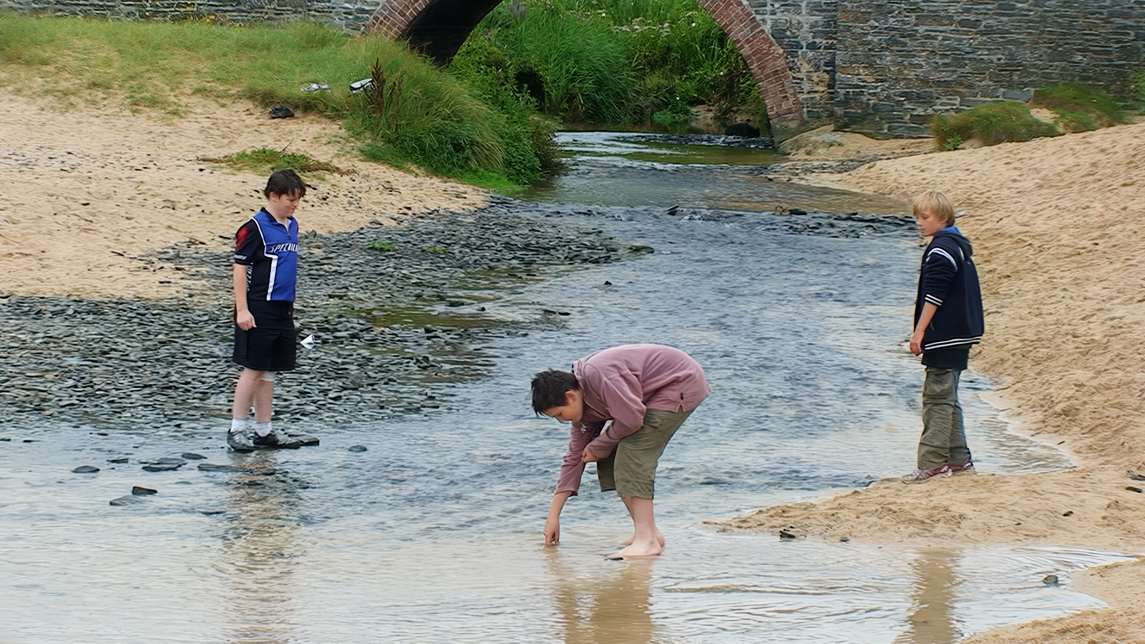 Checking the river flowing into Harlyn Bay, 14.7 miles in.