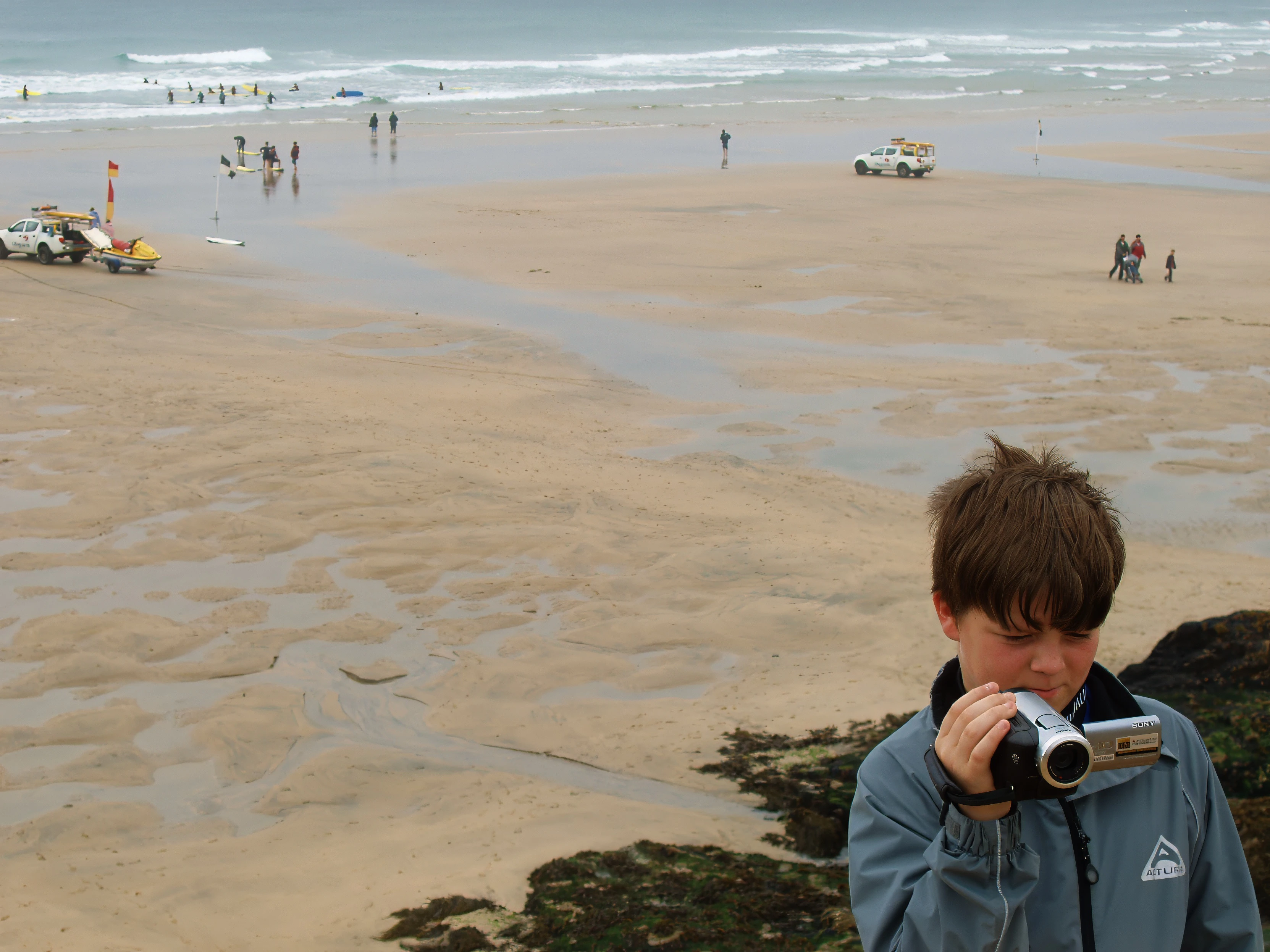 Ash interviews Zac on top of Chapel Rock, Perranporth.
