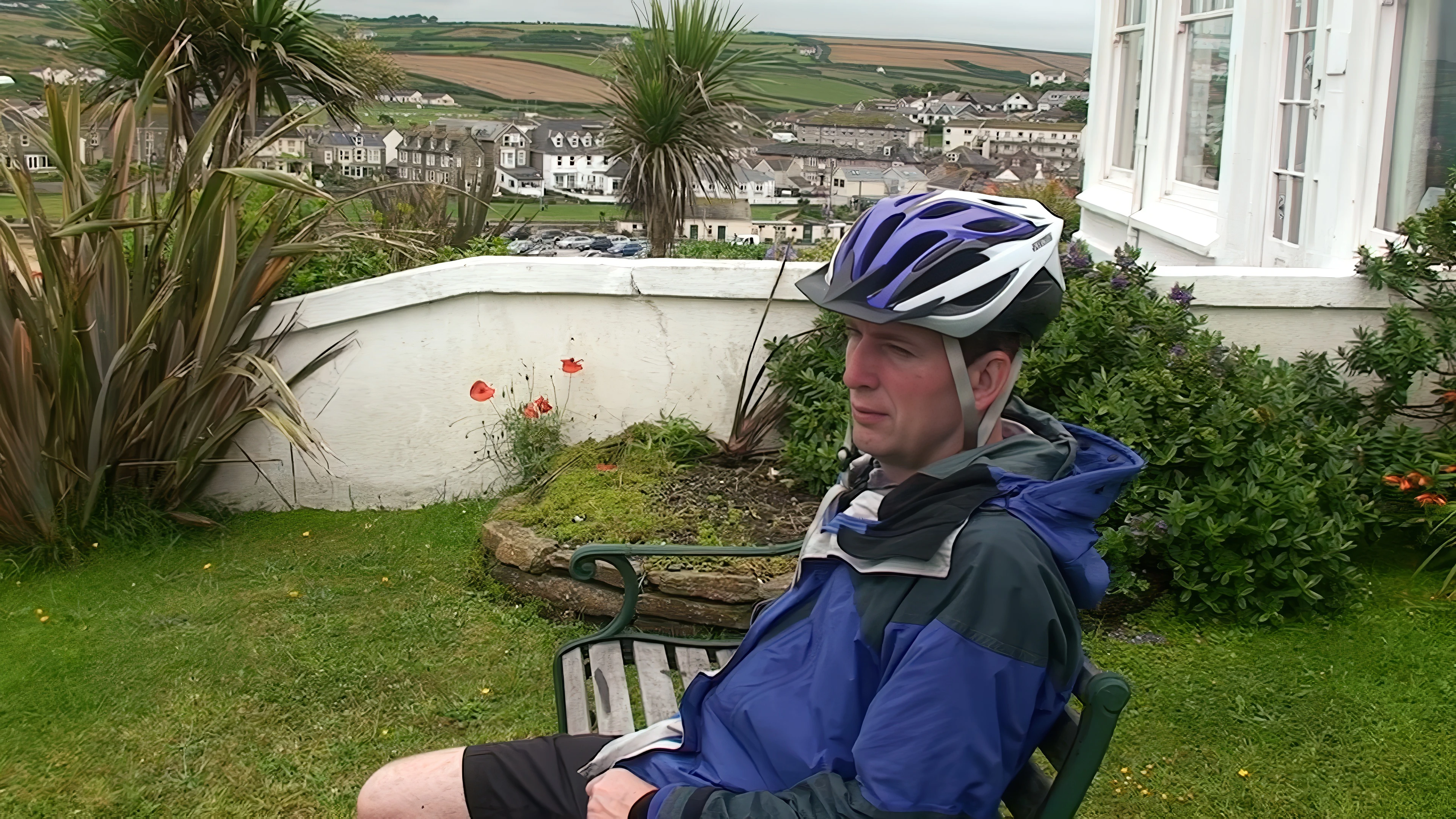 Michael enjoying views across Perranporth Beach from Chy an Kerensa’s front garden.