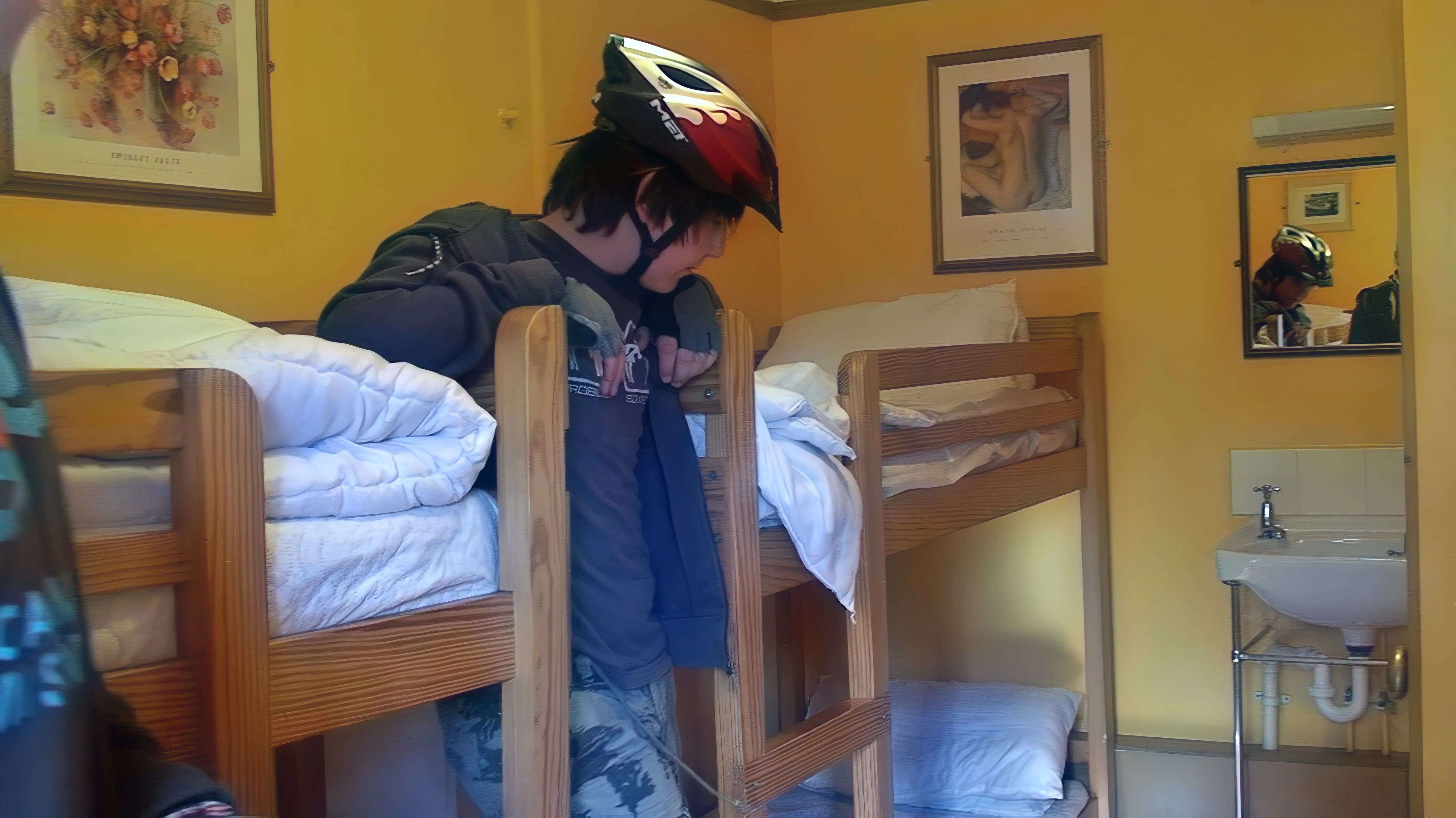 Zac in our rather cramped dorm at Minehead Youth Hostel