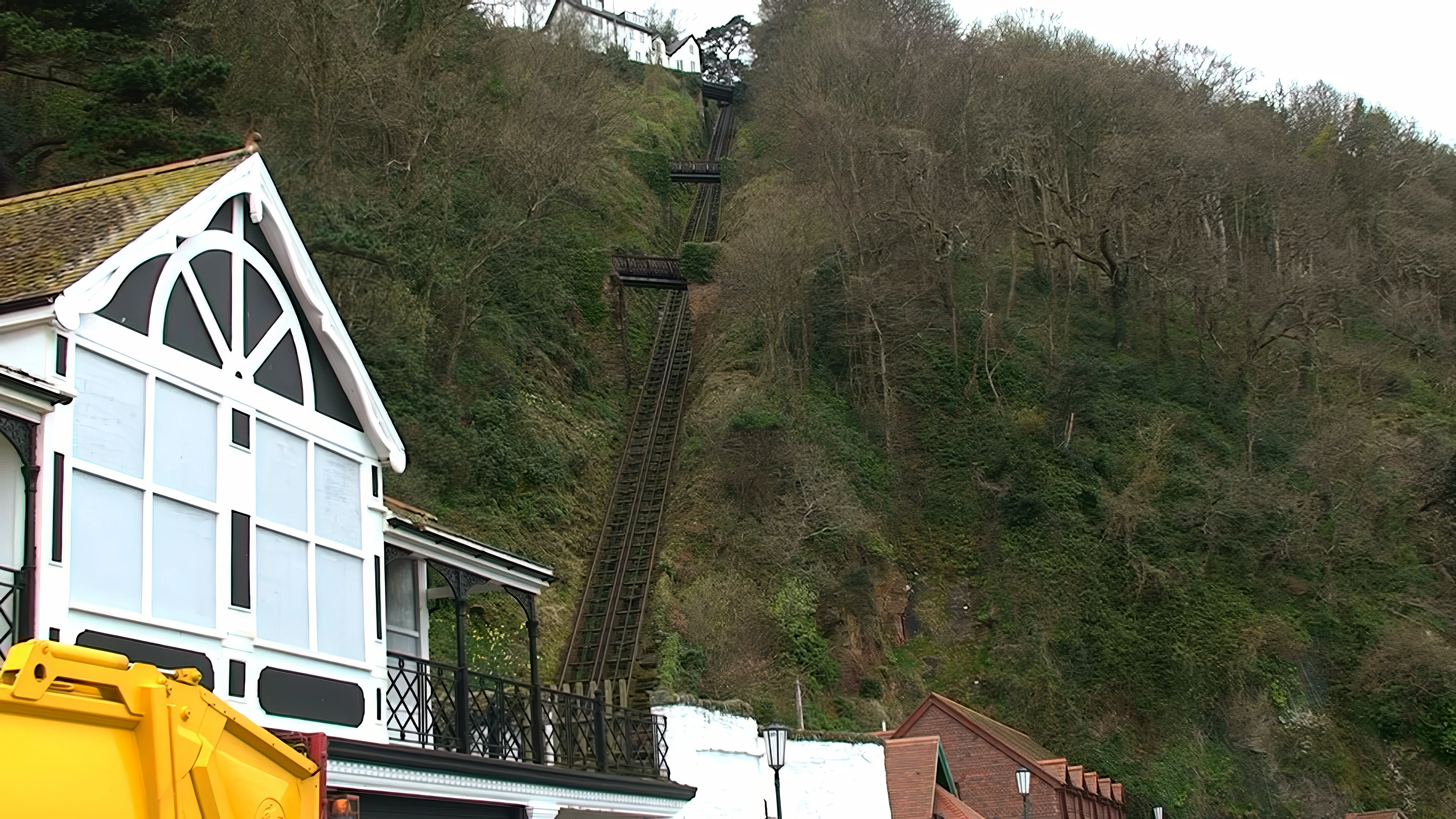 The Lynton and Lynmouth Cliff Railway from the Esplanade.