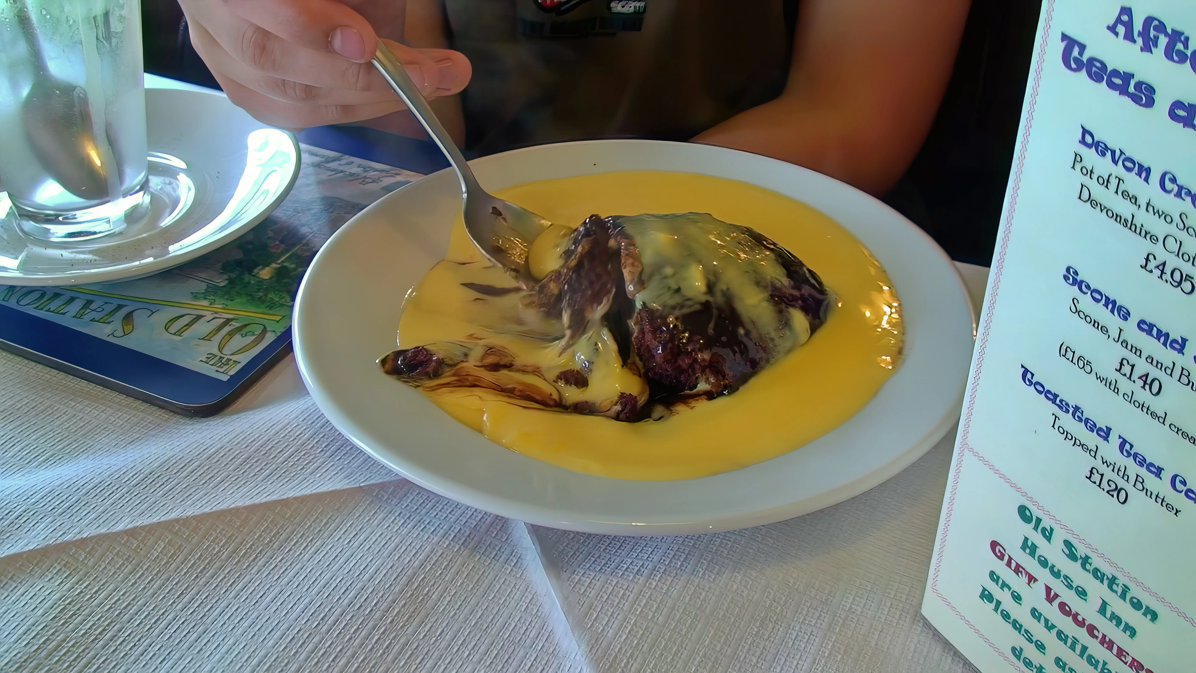Zac’s sticky toffee pudding at the Old Station House Inn—perfect after the soaking.