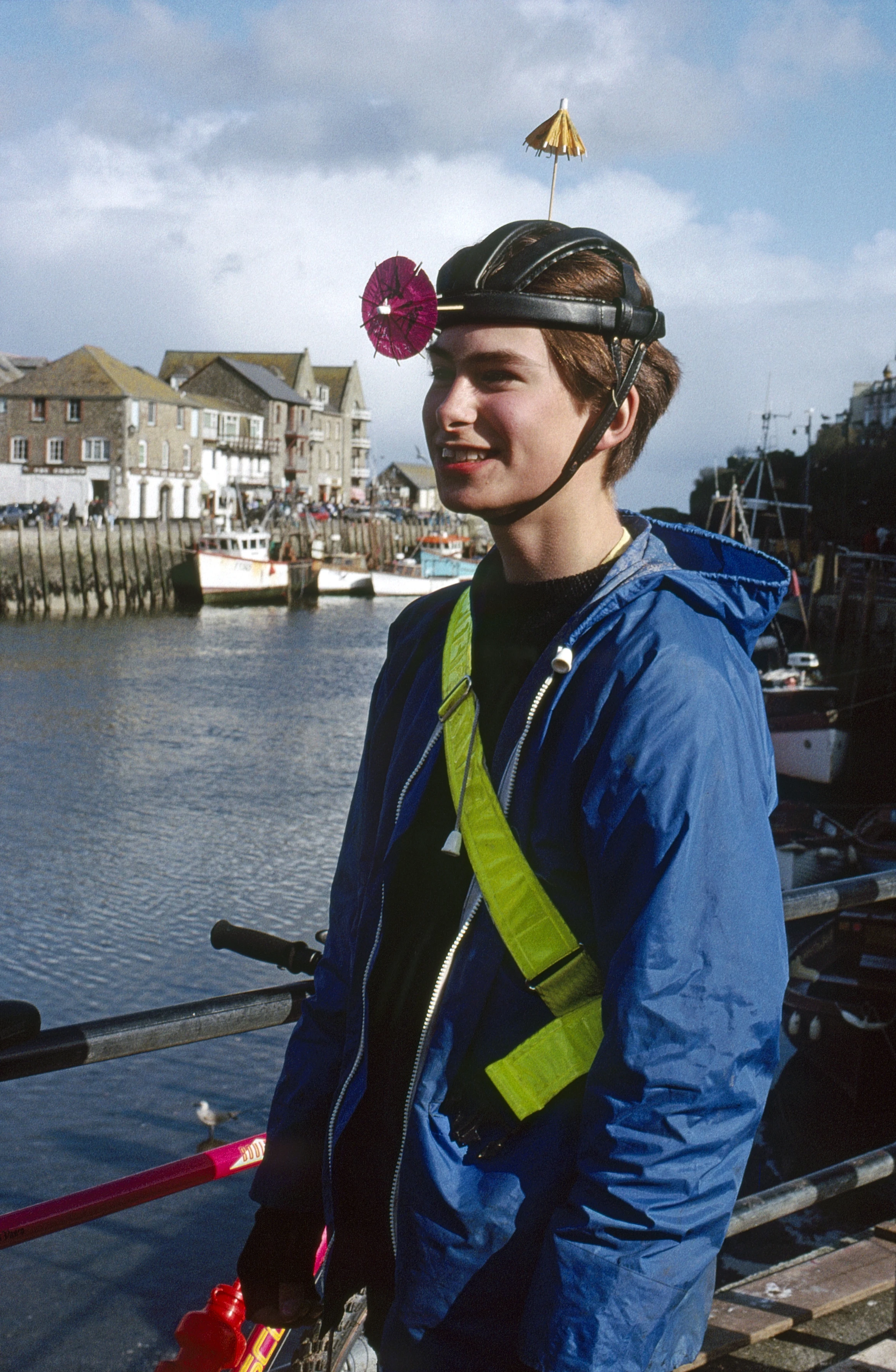 Luke Hatherly in West Looe, sporting Knickerbocker Glory decorations from Tasty Corner café.