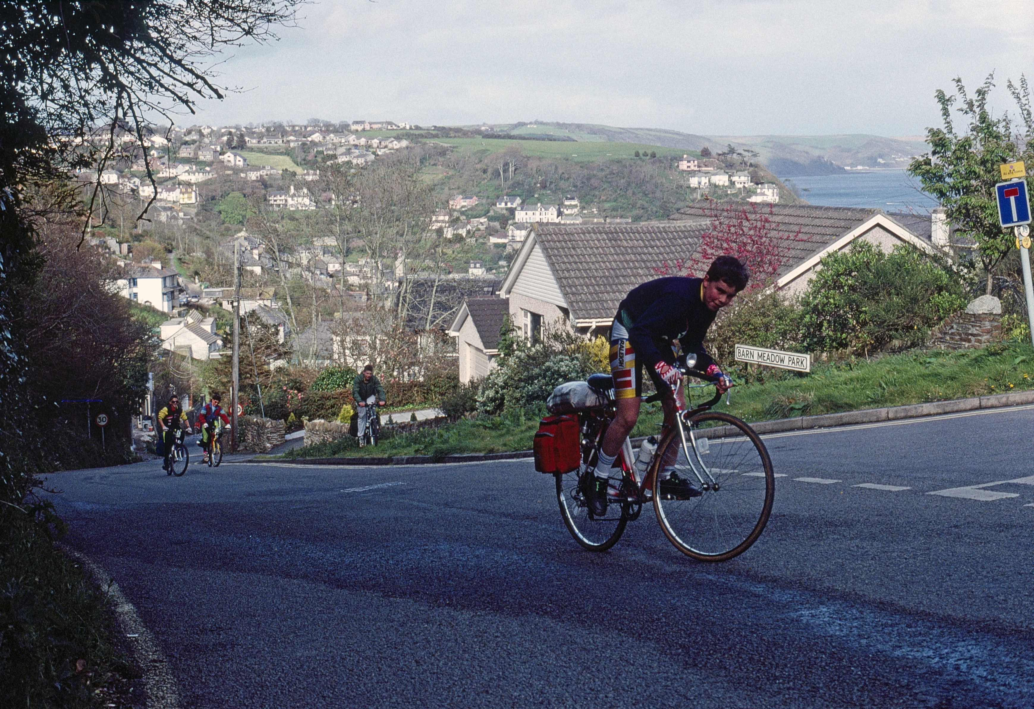 Neil Allan leads the charge up brutally steep West Looe Hill towards Polperro.