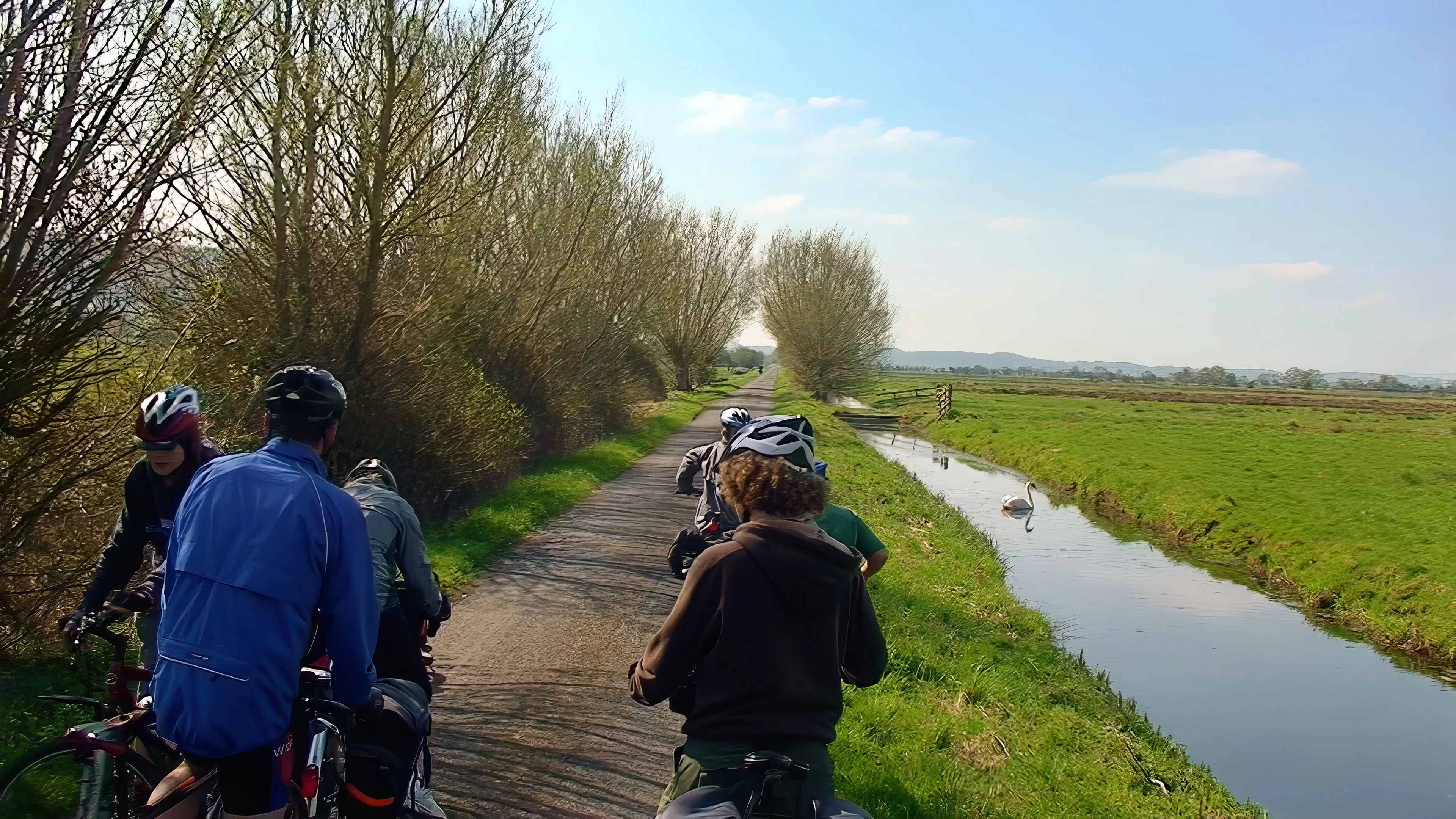 The group with the swan at Beer Drove, Somerset Levels.