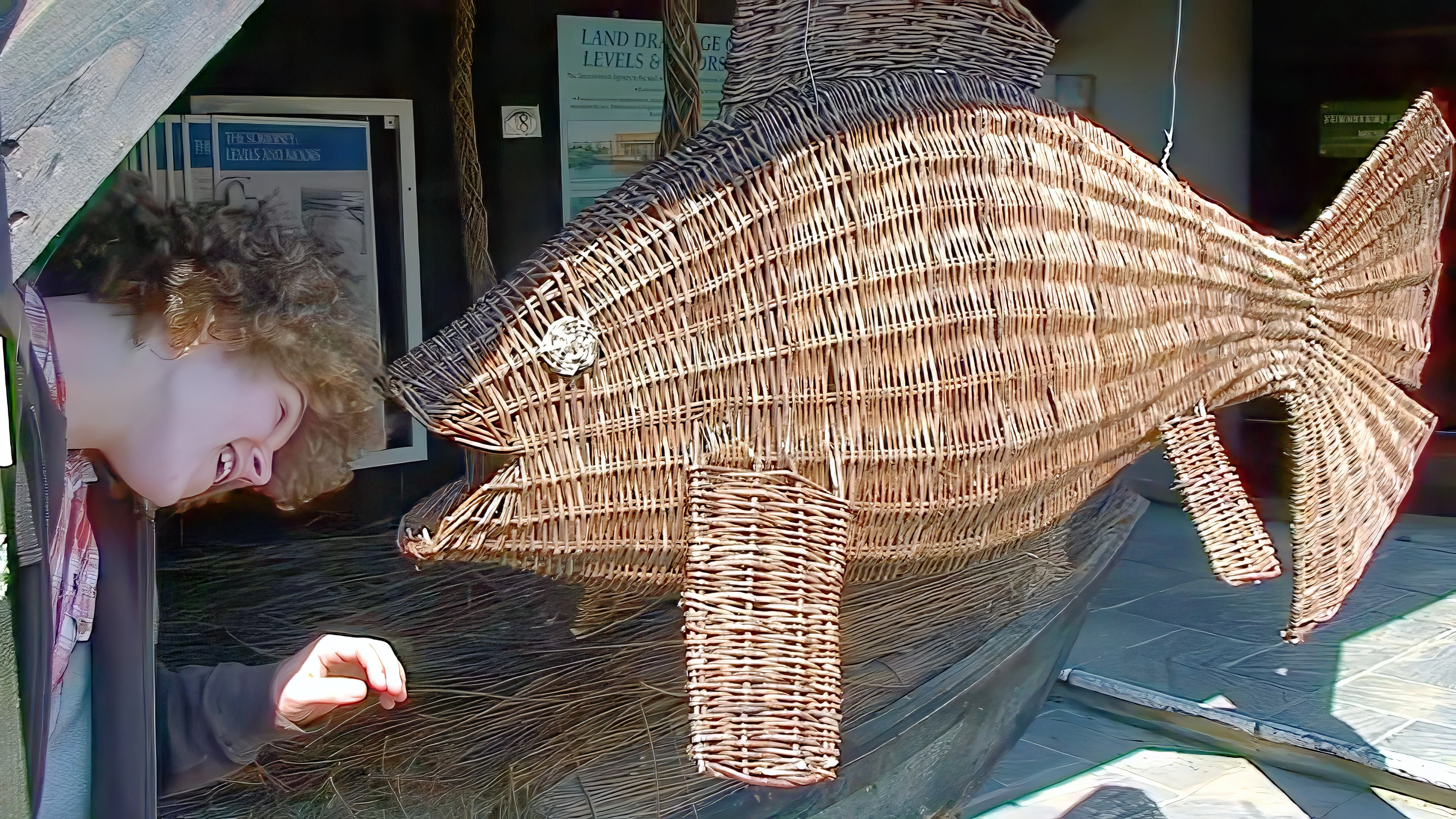 Ryan with the willow fish at the Willows and Wetlands Centre, Meare Green.