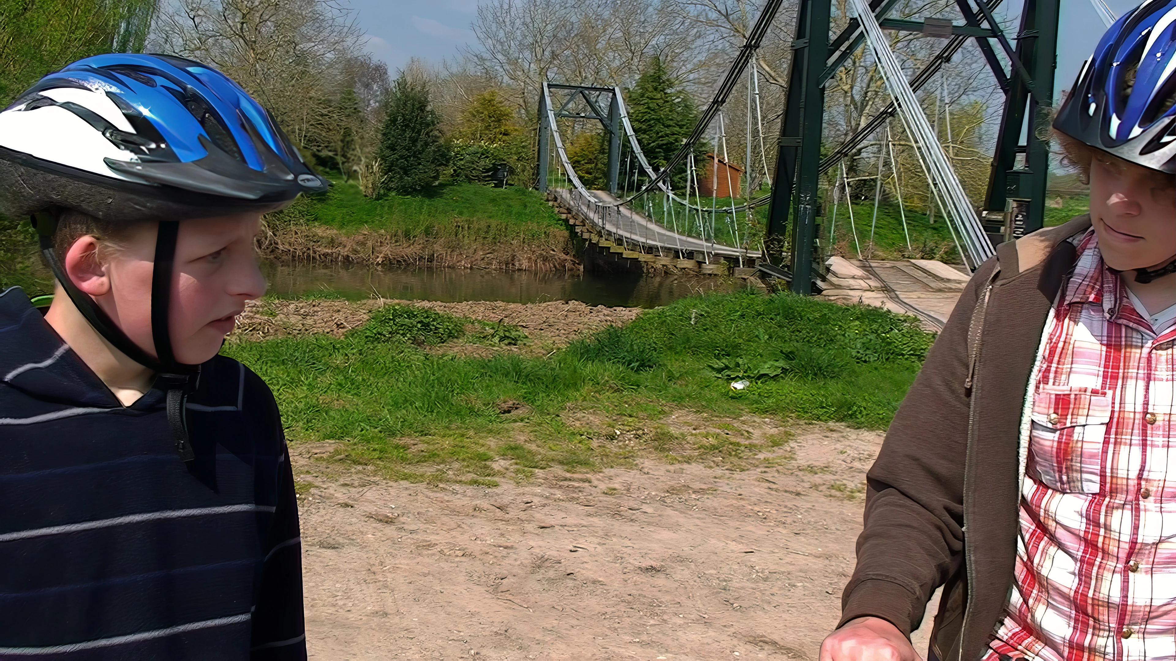 Callum and Ryan at Ham footbridge, heading for Bridgwater and Taunton Canal at Creech St Michael.