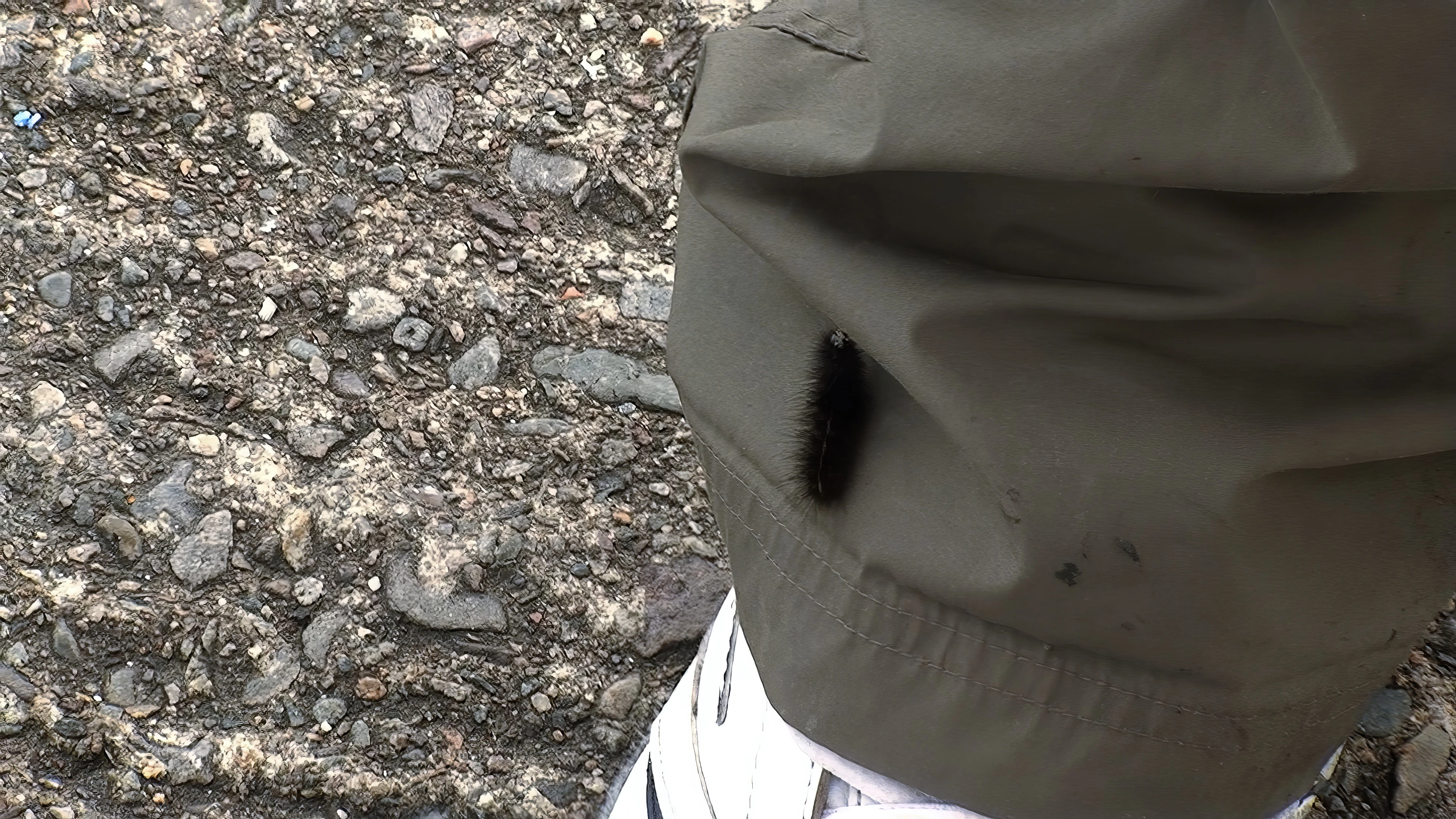 The caterpillar crawling up Ryan's trousers at Sconser Quay.