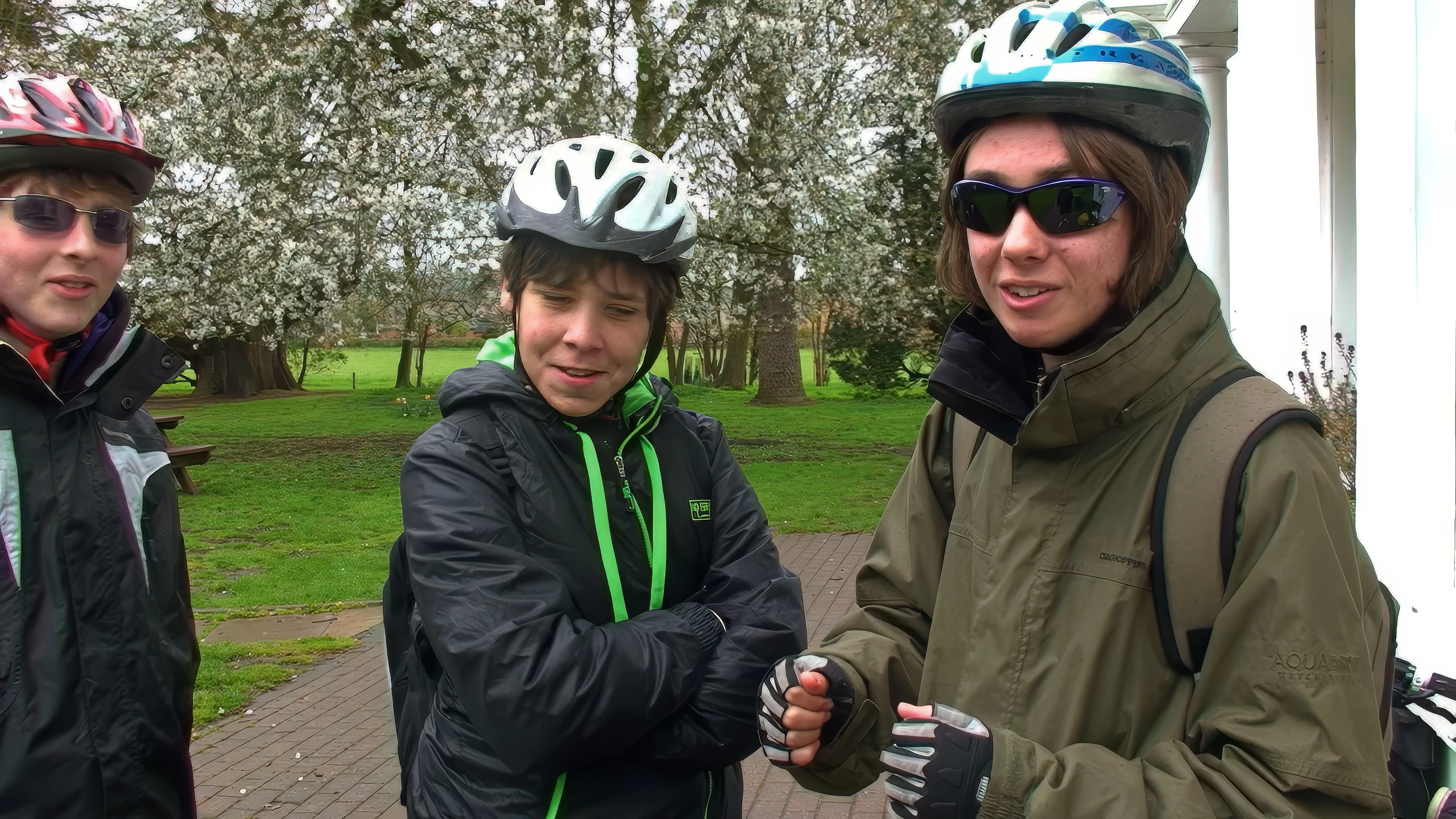 Callum, Callum and Jack open Ash’s tour of Stratford-upon-Avon Youth Hostel.