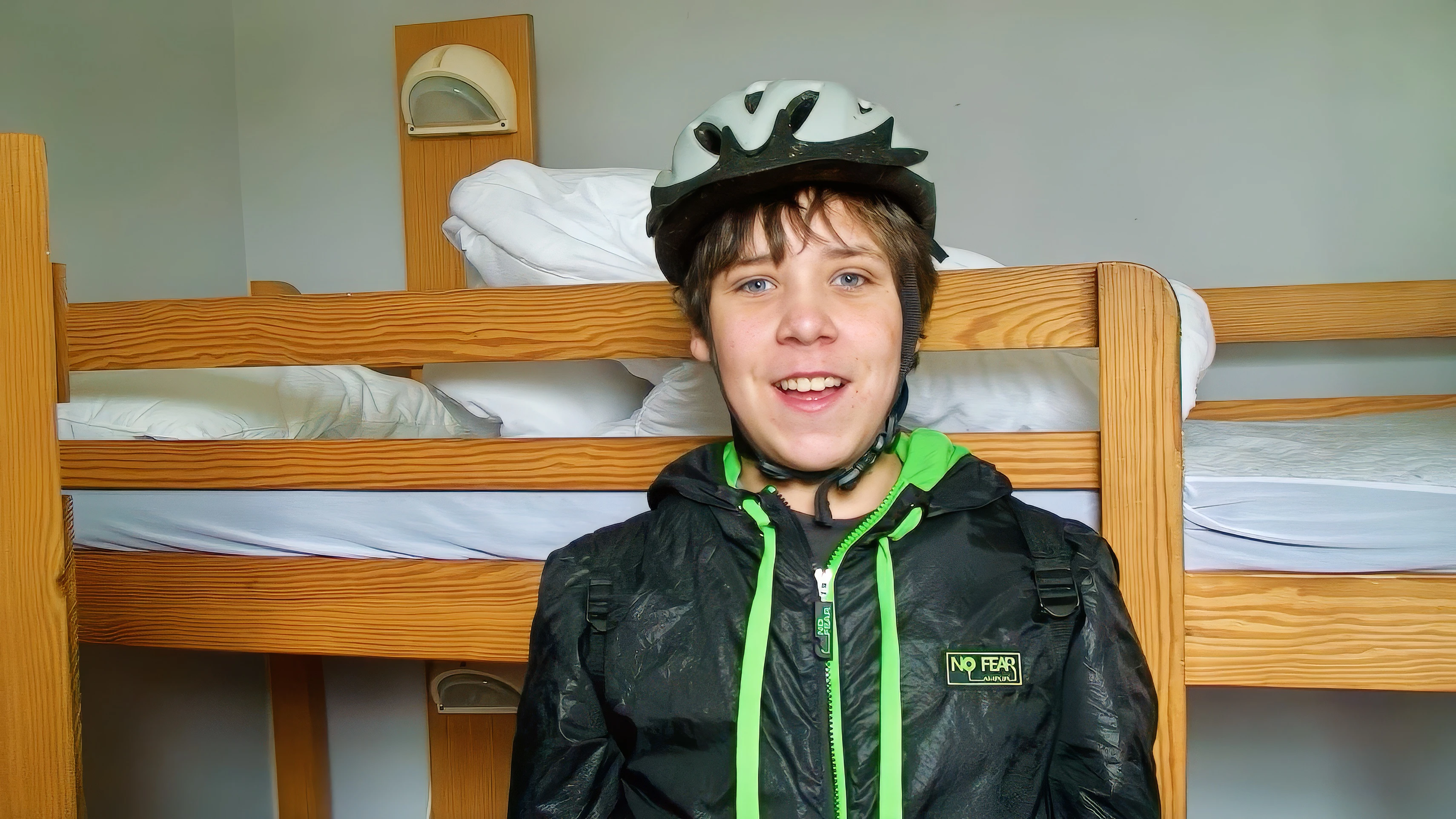 Callum in our dorm at Stratford-upon-Avon Youth Hostel.