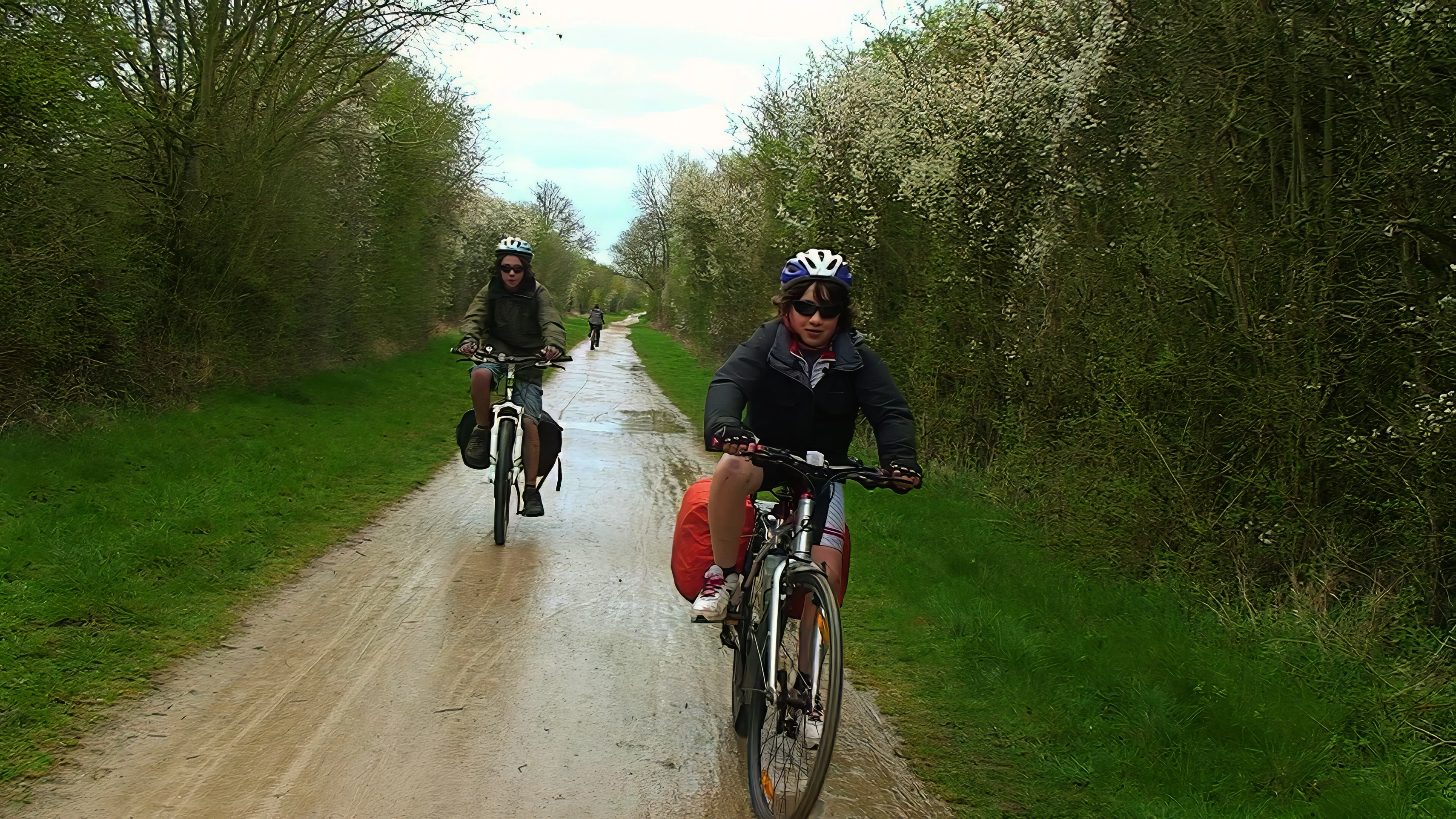 Riding a very wet Greenway cycle path, Stratford-upon-Avon, after a late start.