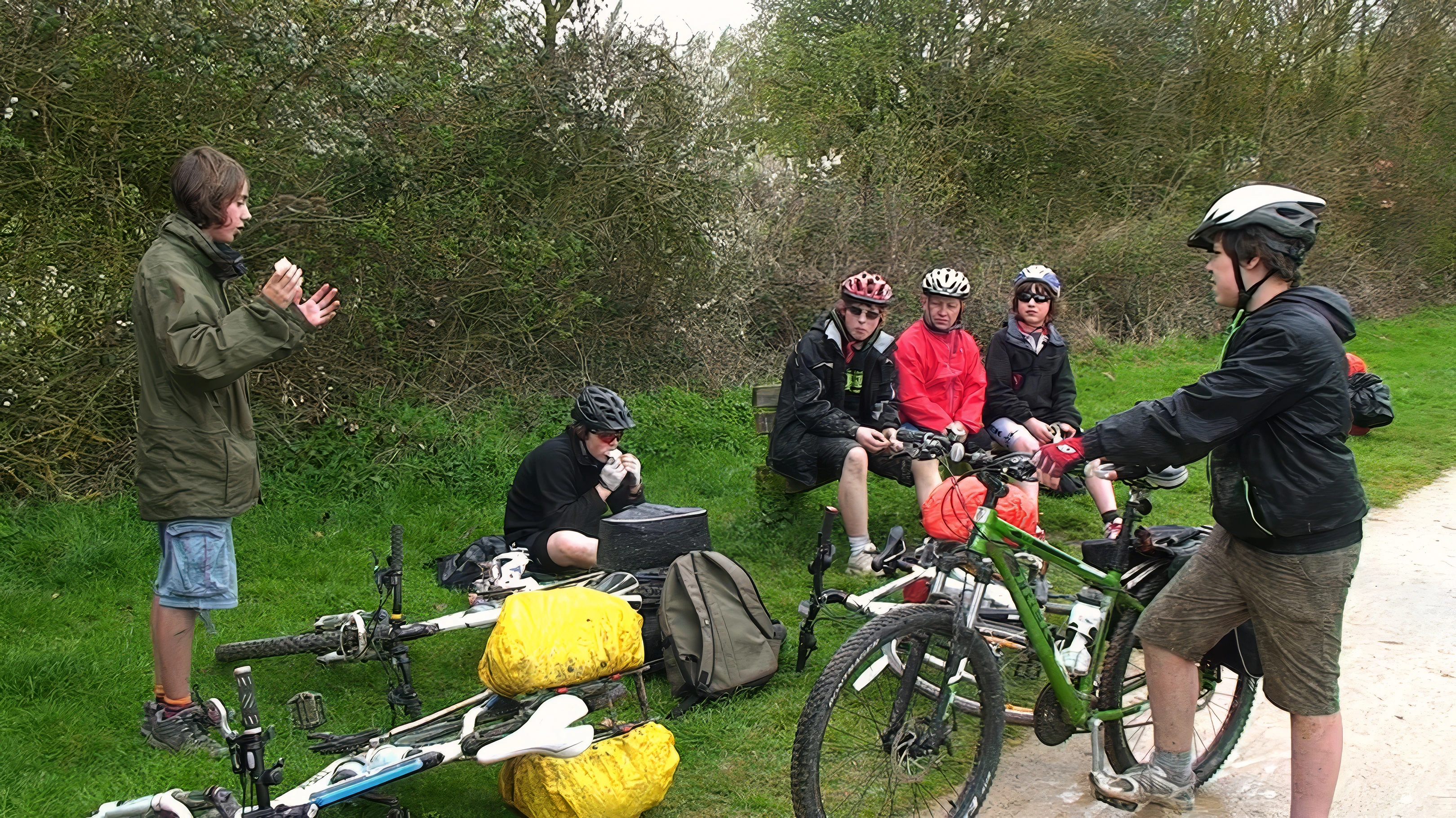 A wet lunch on the Greenway near Long Marston, 8 miles into the ride.