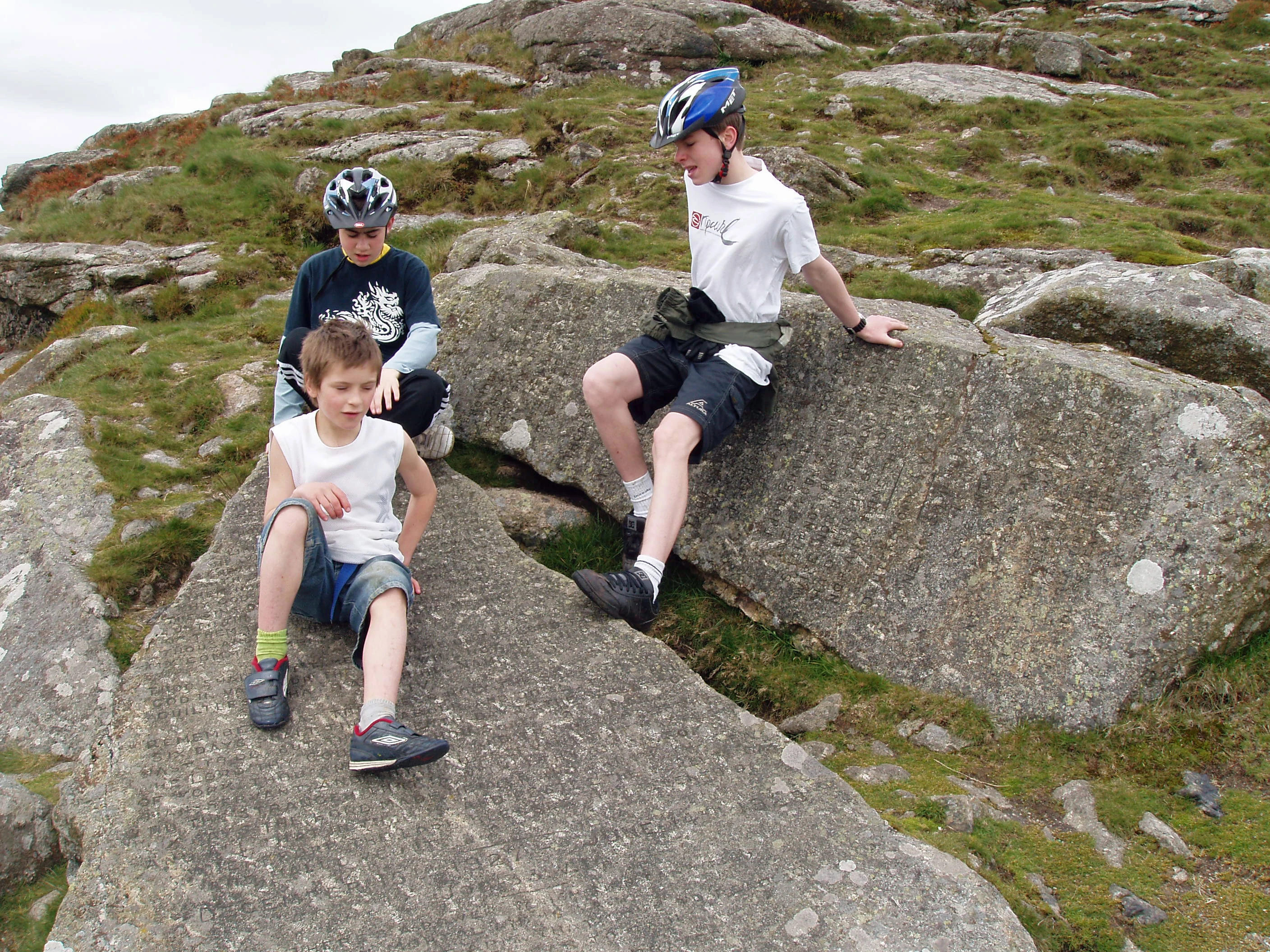 Dennis, Keir and Joe on the Ten Commandments Stone at Buckland Beacon