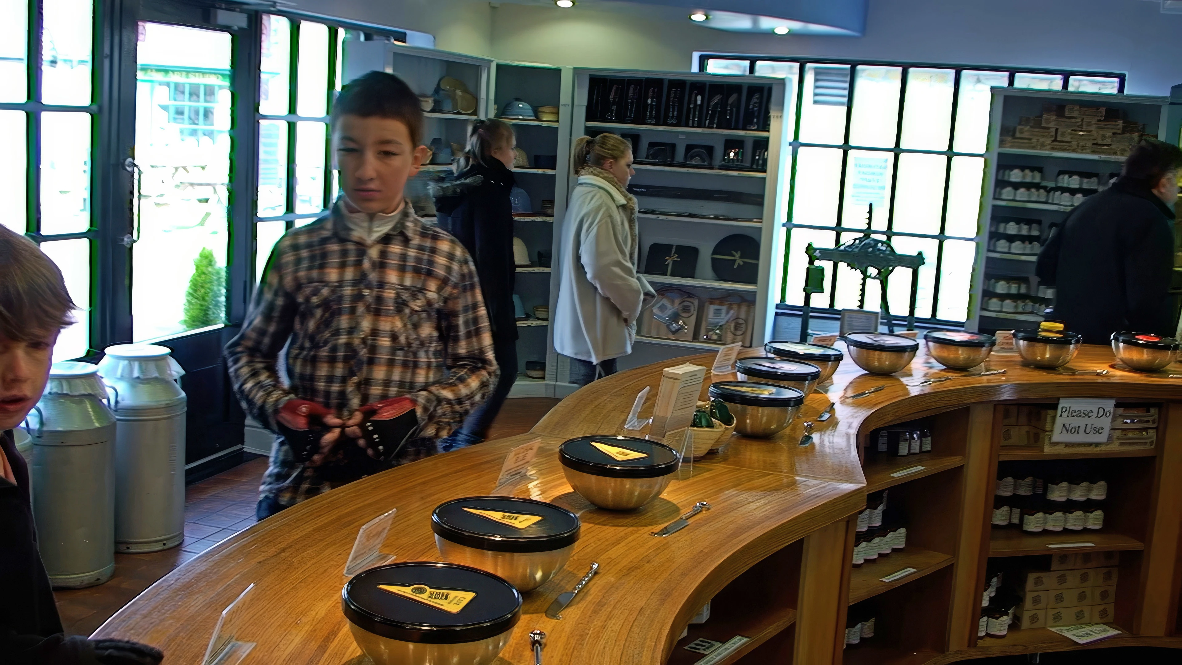 In the Cheddar Gorge Cheese Company shop after our factory tour.