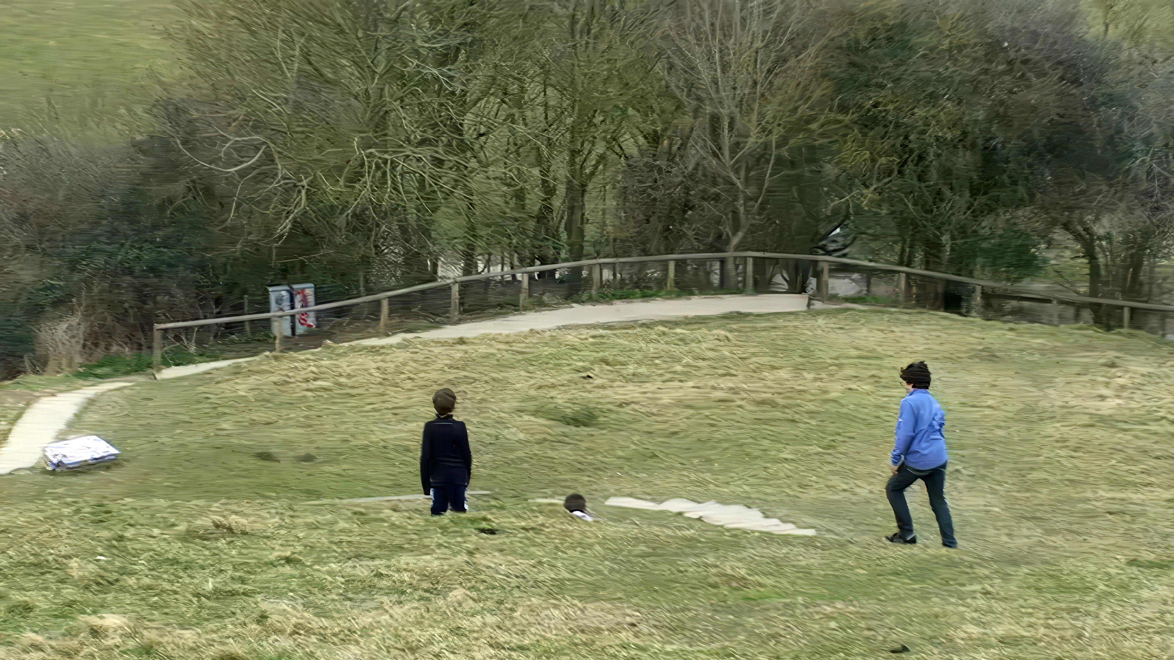 Scrambling down Glastonbury Tor to reach the bikes in Stone Down Lane.