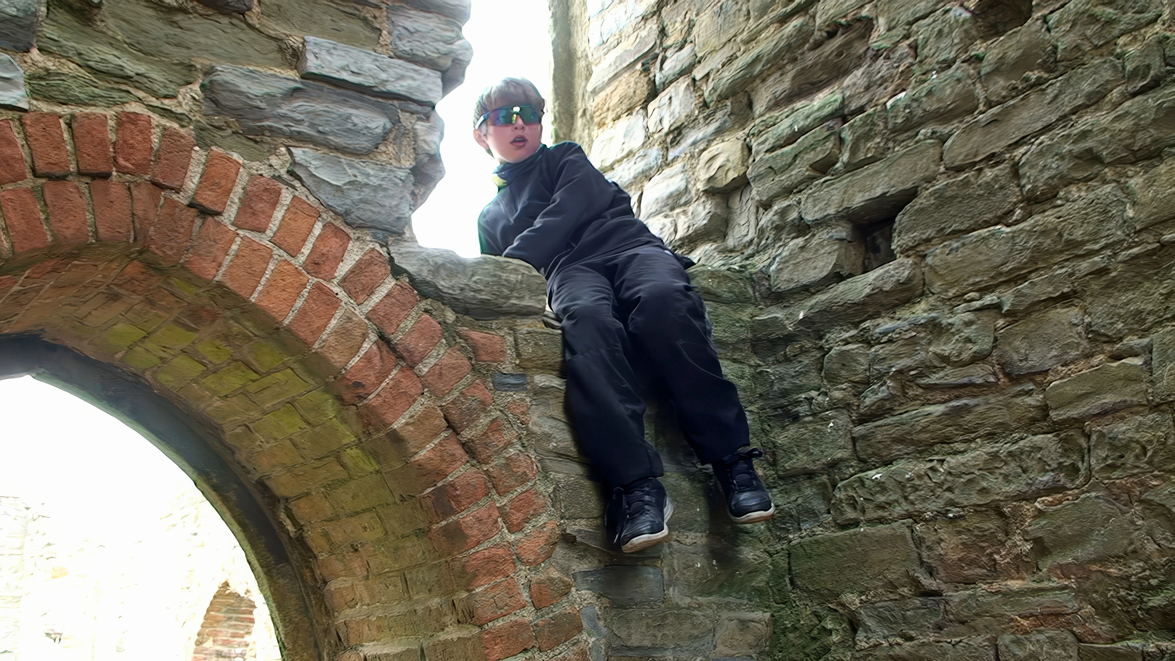 George got help up to this window on Burrow Mump—less sure about getting down