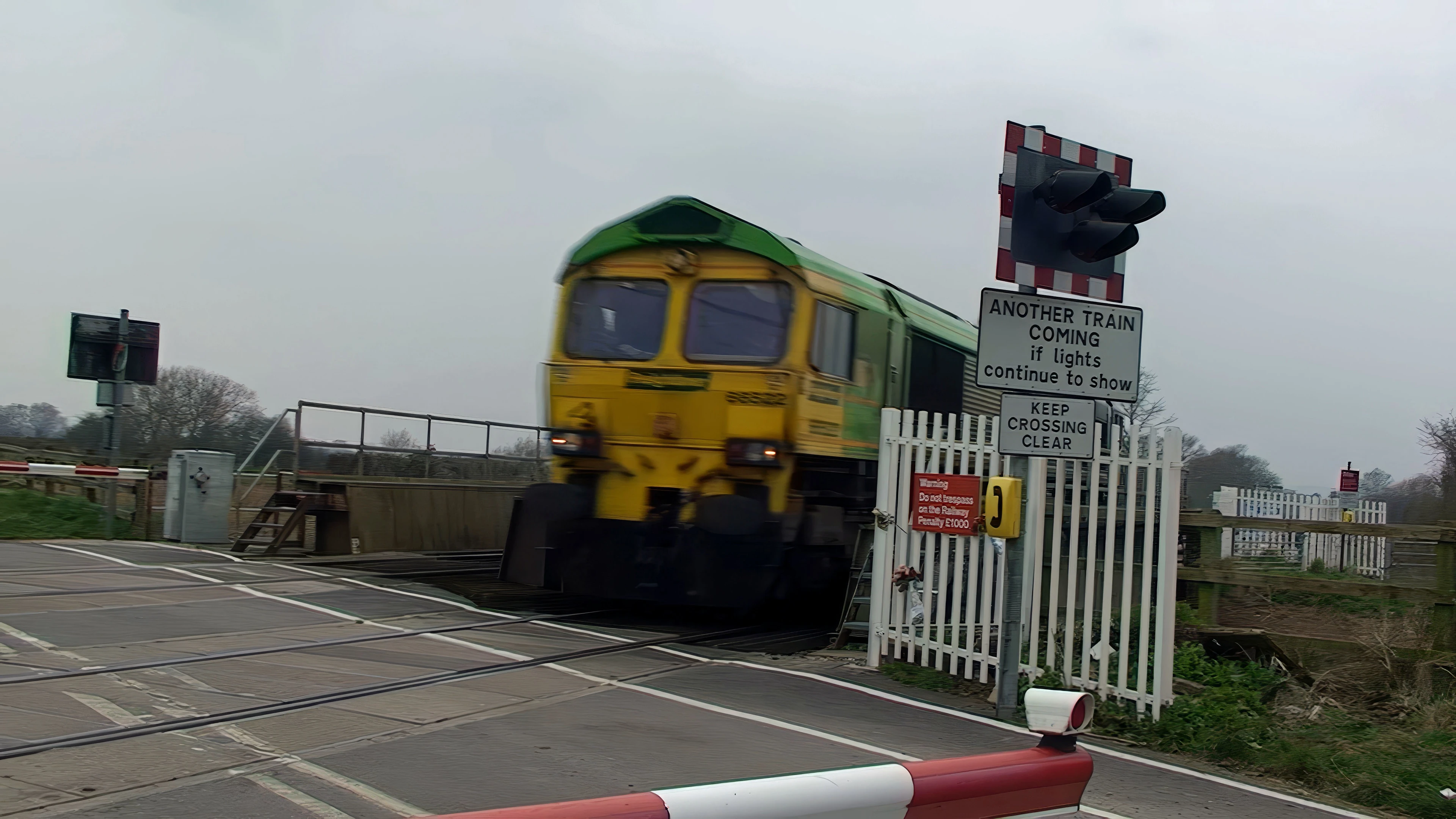 A light engine crosses the level crossing at Athelney