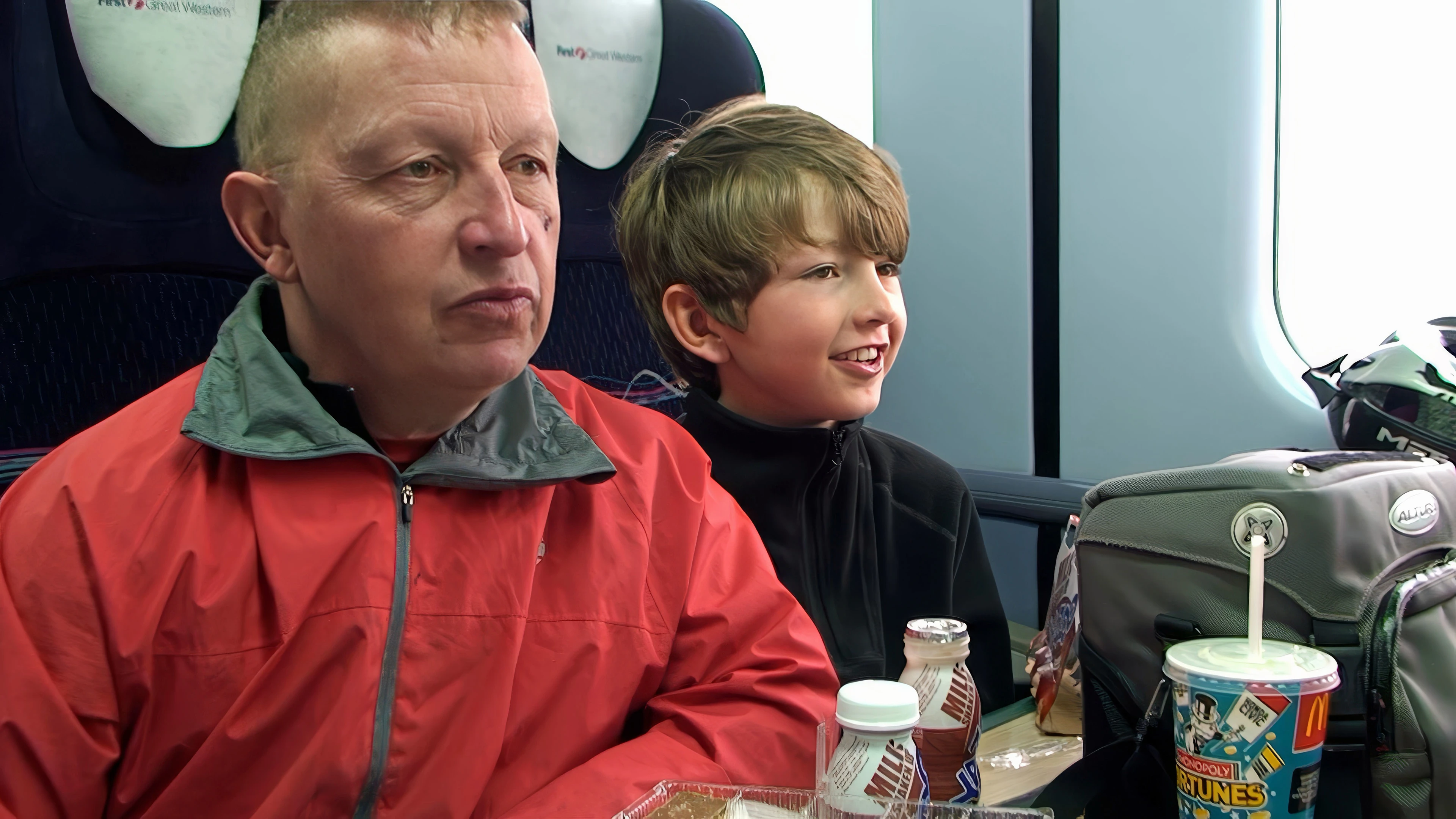 John and George on the 15:49 from Taunton to Newton Abbot, passing Langstone Rock near Dawlish Warren